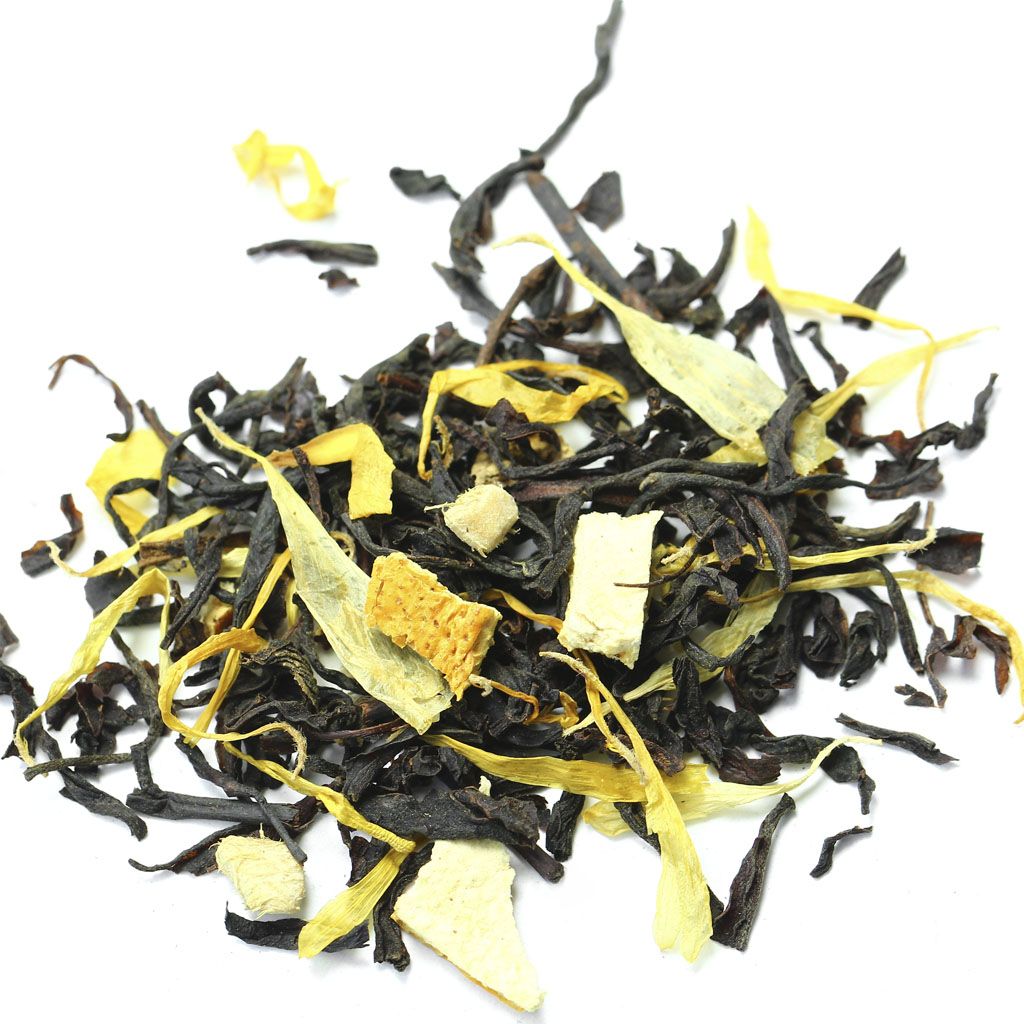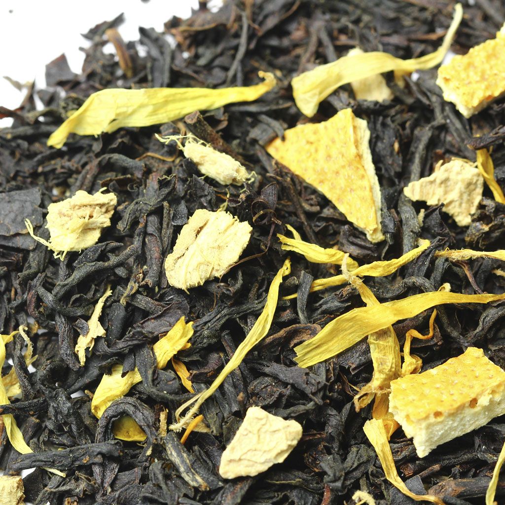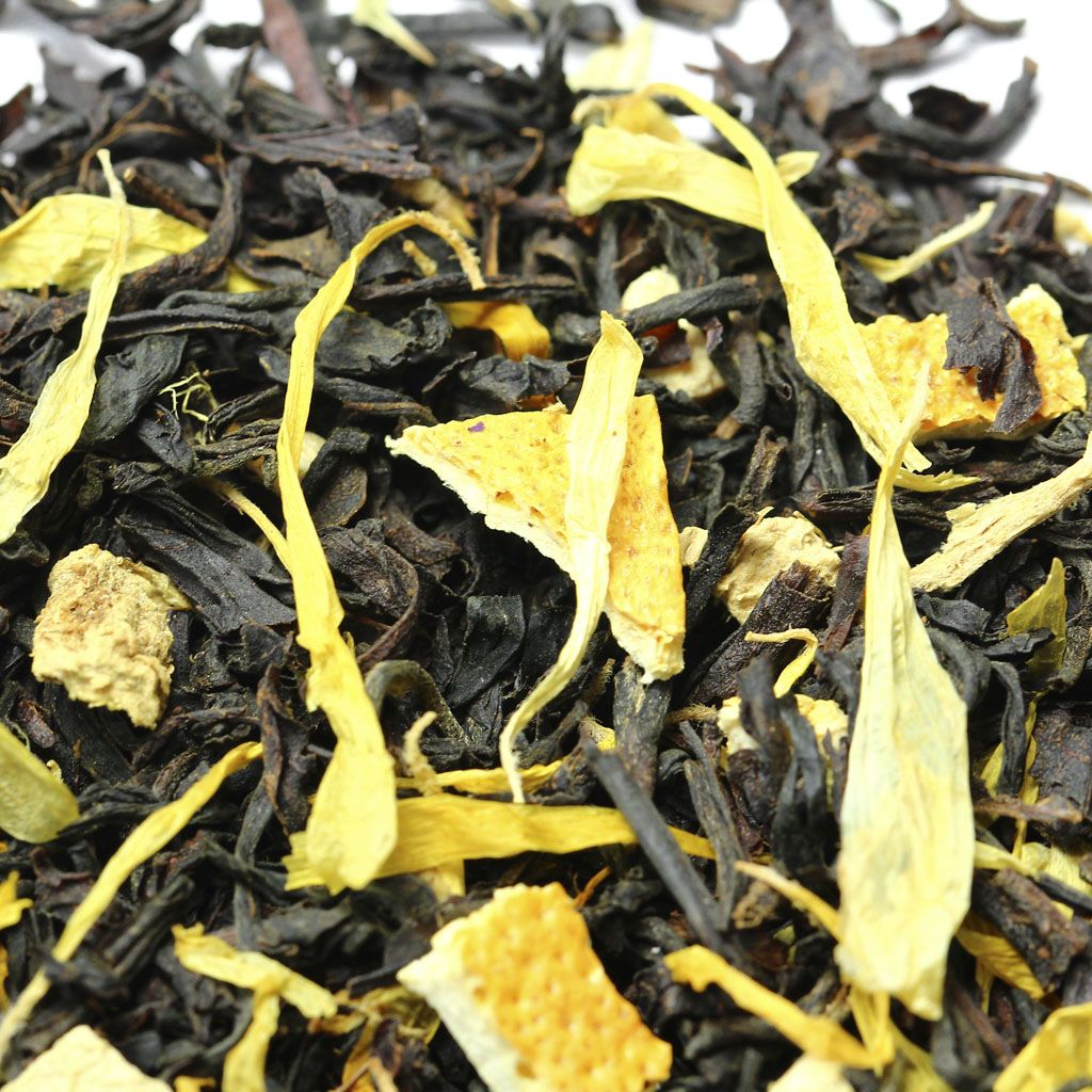 Чай черный цейлонский, кусочки имбиря, цедра апельсина, лепестки календулы, аромат марроканского апельсина.