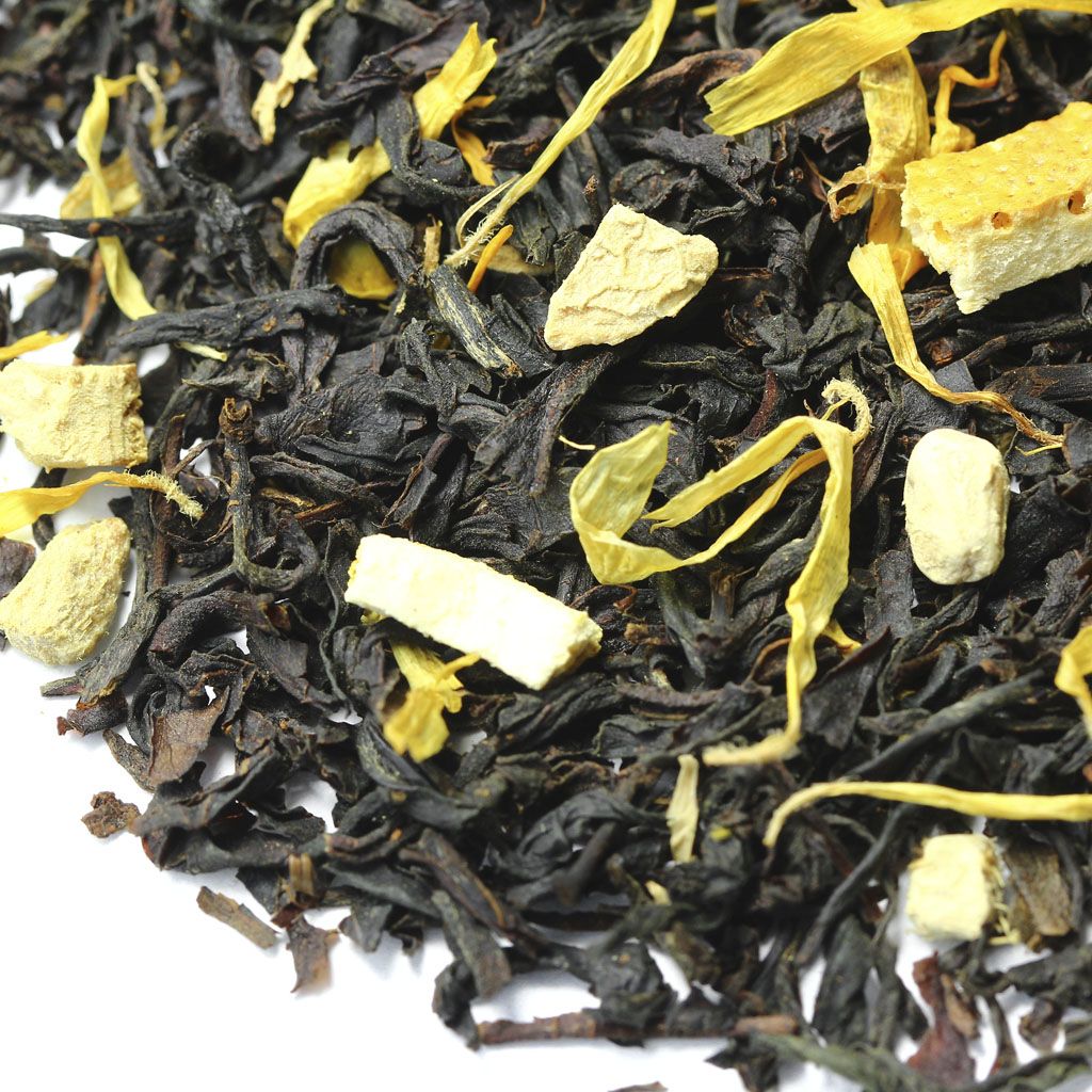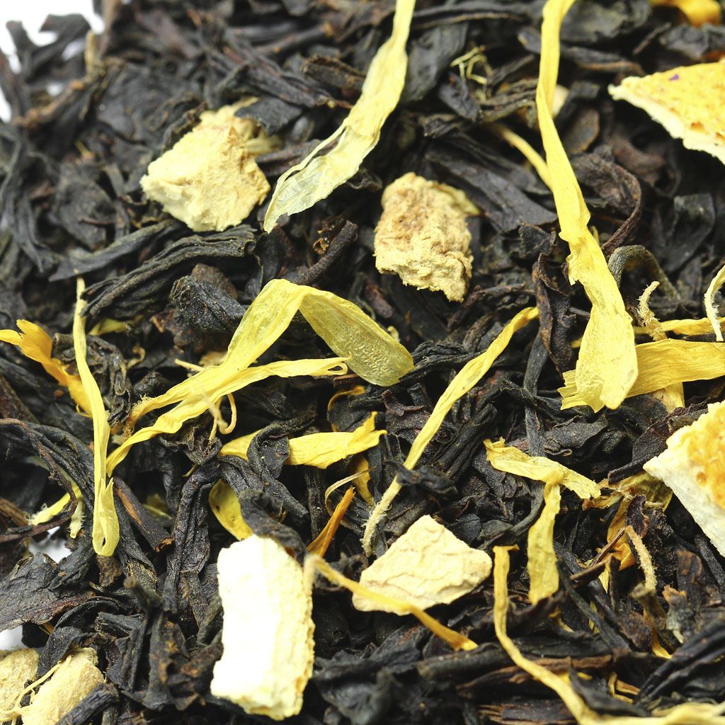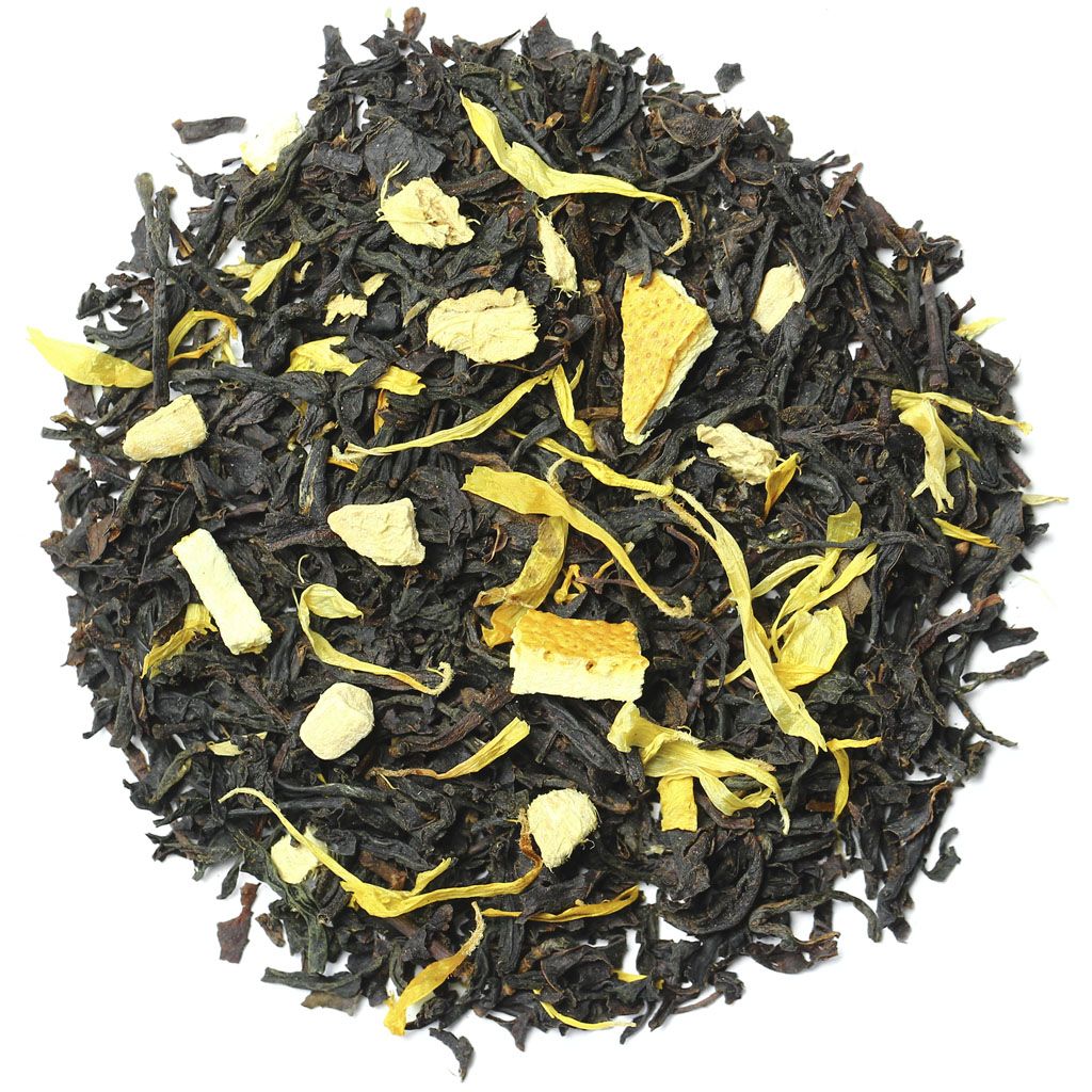 Чай черный цейлонский, кусочки имбиря, цедра апельсина, лепестки календулы, аромат марроканского апельсина.