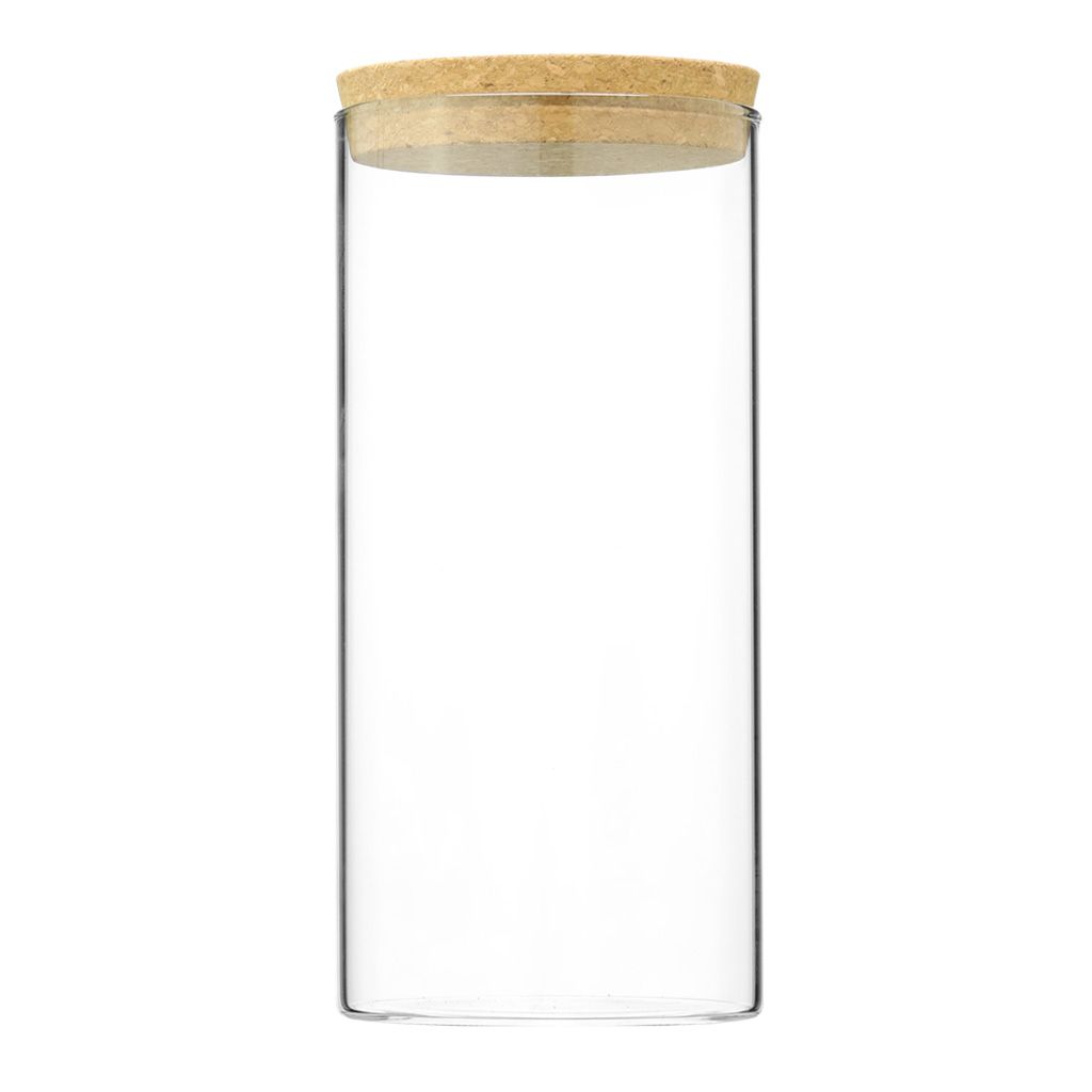 Стеклянная банка цилиндрической формы, с крышкой из пробки 21х10 см