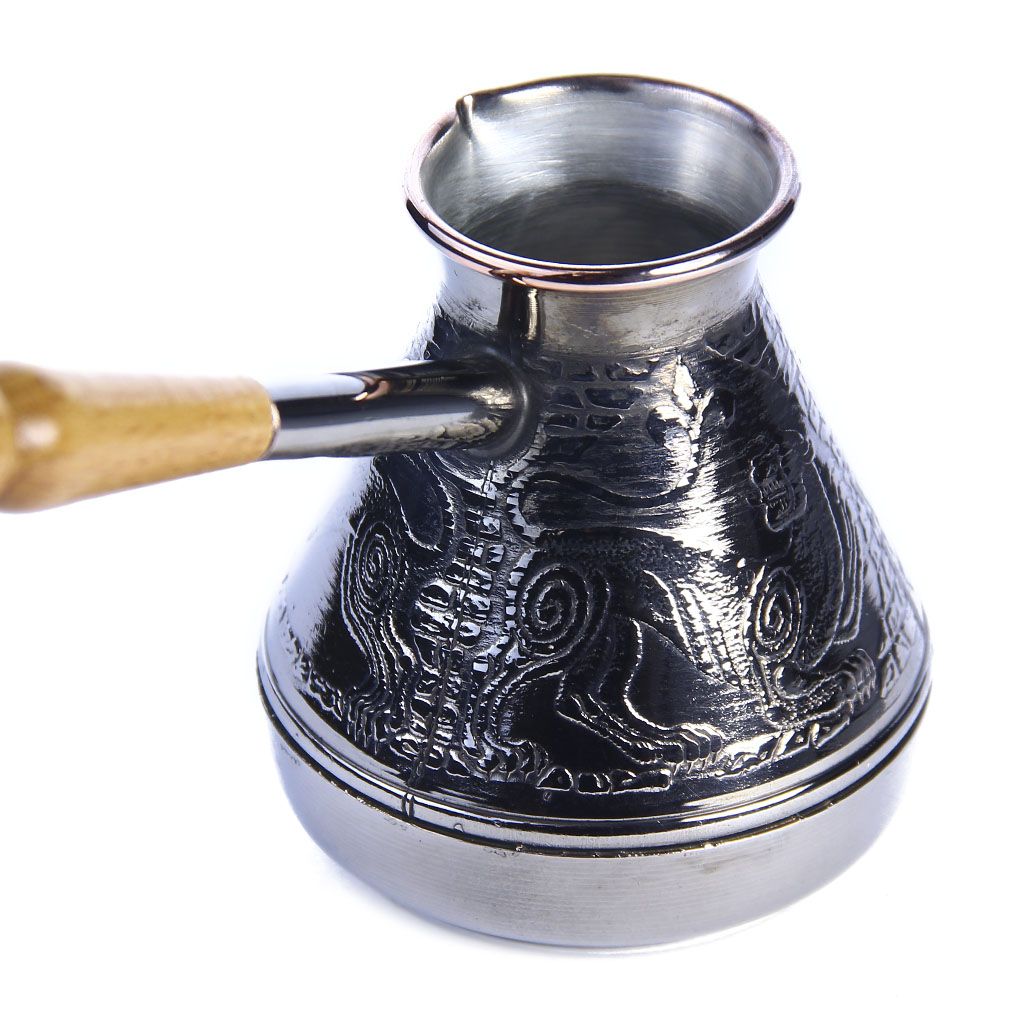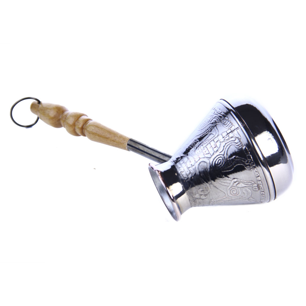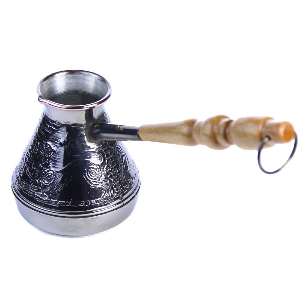 Медная турка конической формы, с длинной деревянной ручкой, объемом 200 мл.