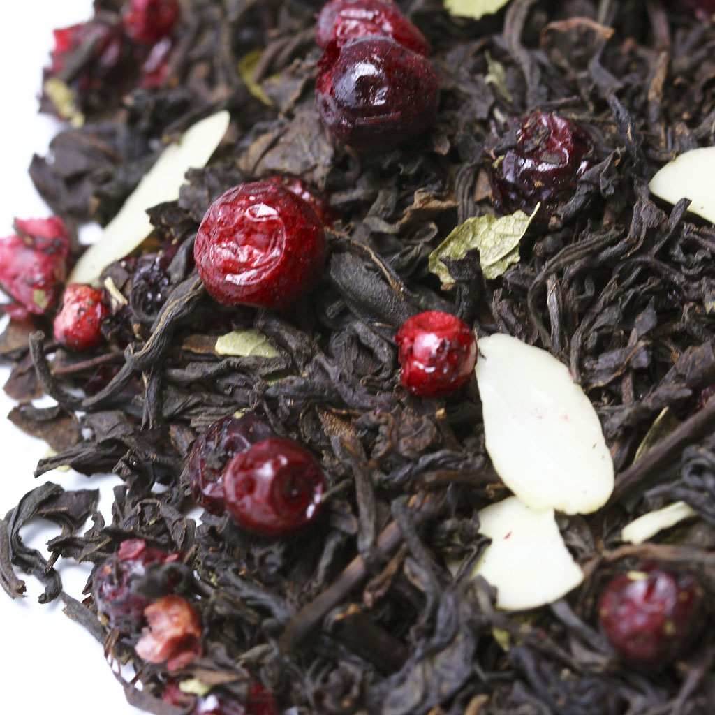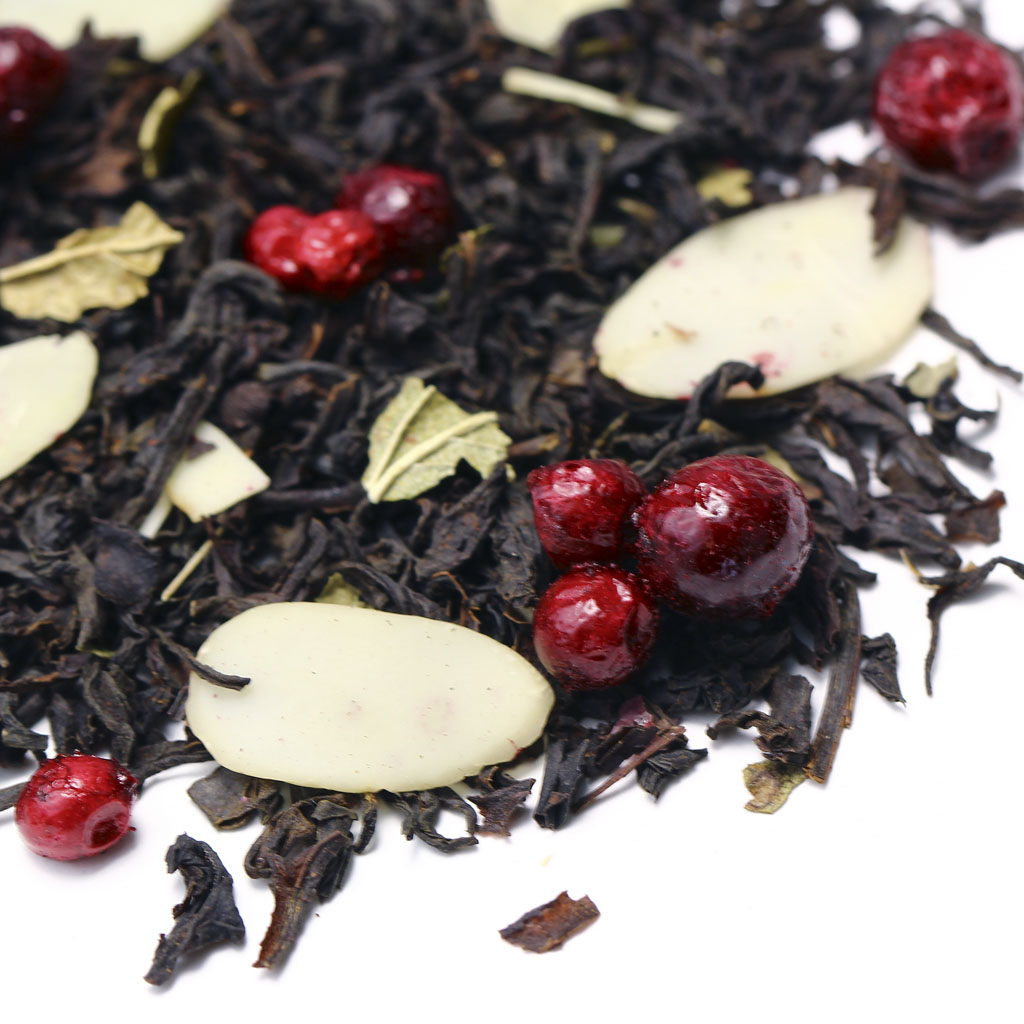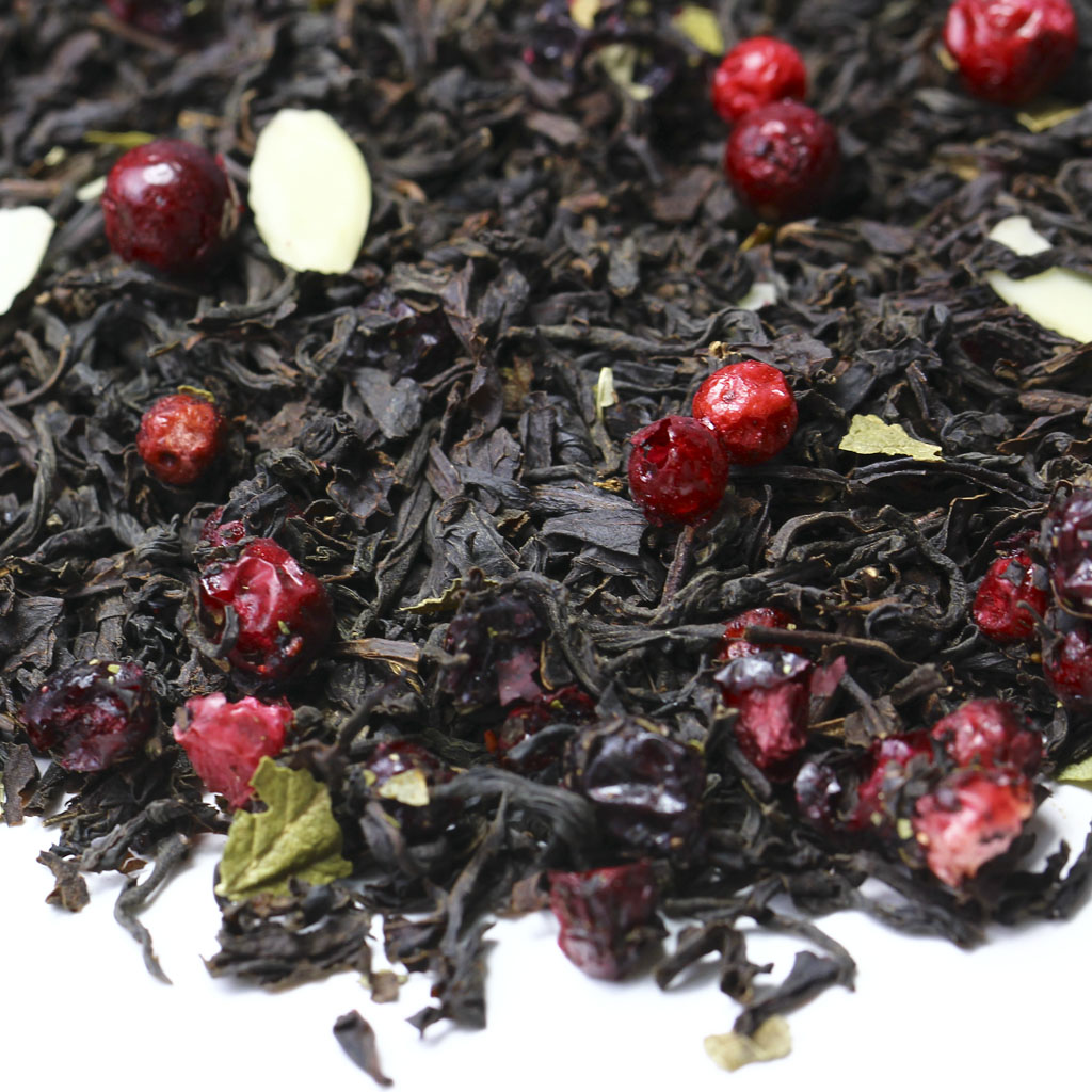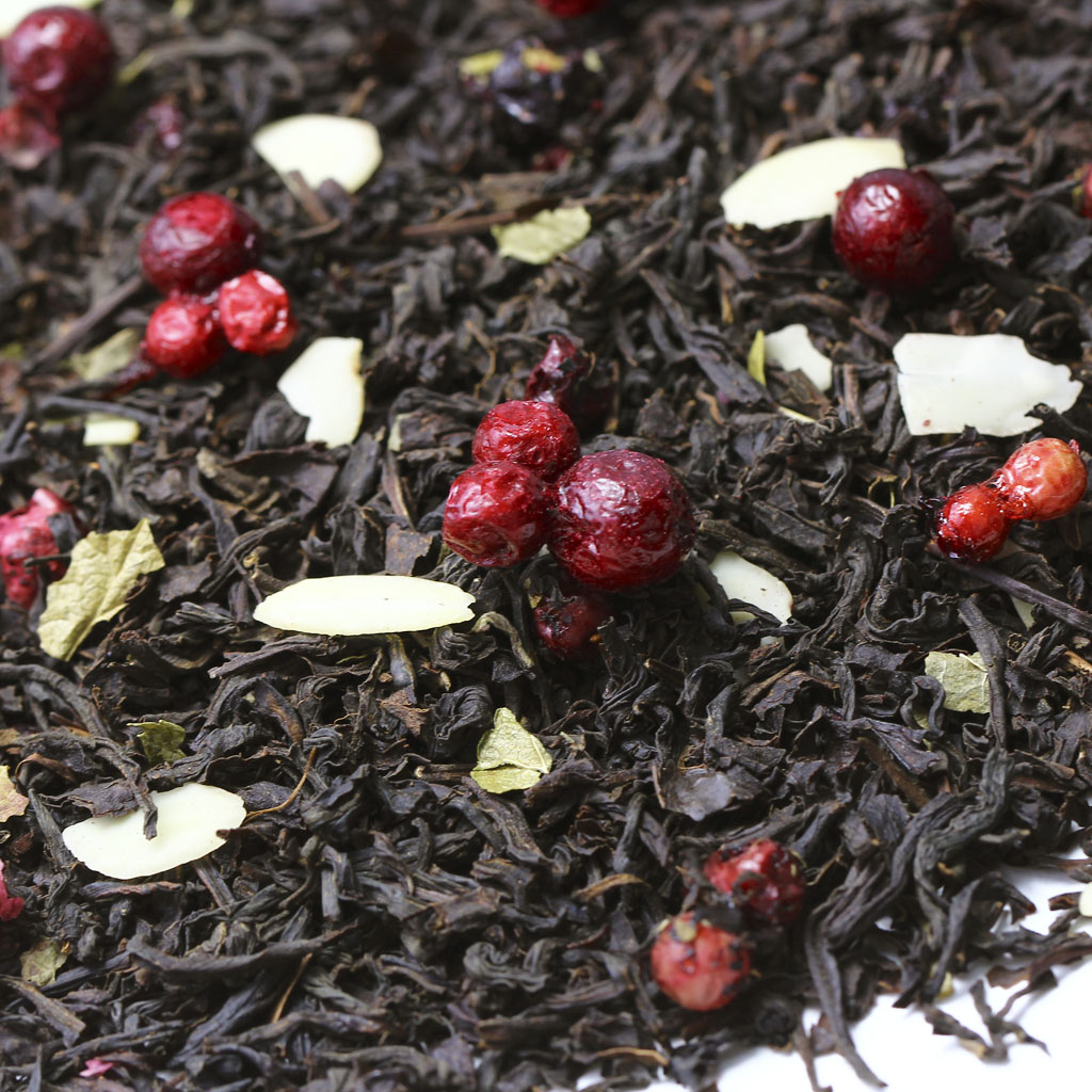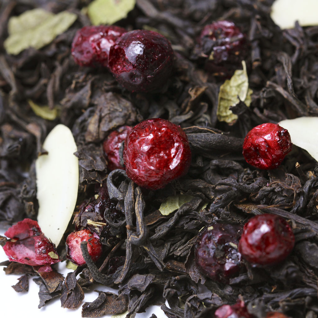 Казалось бы, что истинного ценителя черного индийского чая не удивить, но этот вариант заставит изменить подобное мнение. Слайсы соблазнительного миндаля, ароматные ягоды брусники и лист смородины действительно свежее решение.