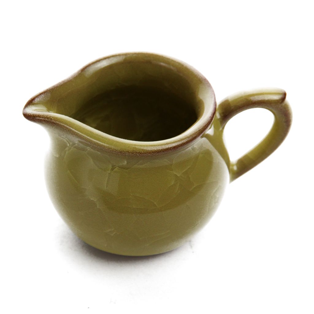 Маленький сливник объемом 125 мл; в форме венчика ландыша, с изогнутым носиком, плавно переходящем в горловину; из керамики, покрытой глазурью