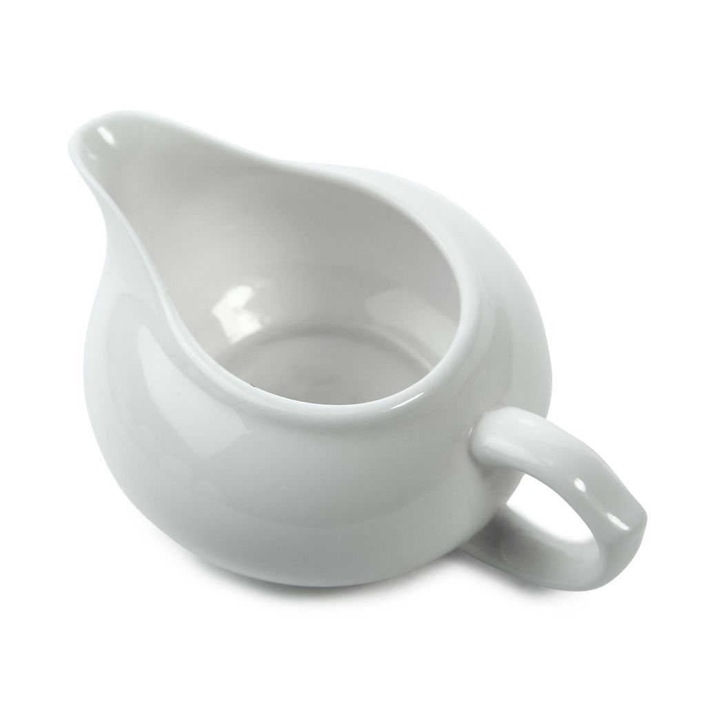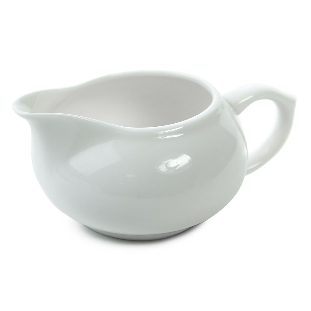 Чахай из белого фарфора, приплюснутой округлой формы, с петлеобразной ручкой. Горловина переходит в плавно изогнутый носик.