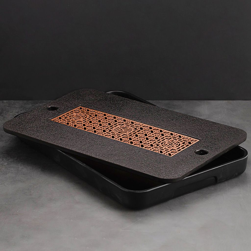 Чабань прямоугольная каменная Сокровища Китая с черным поддоном