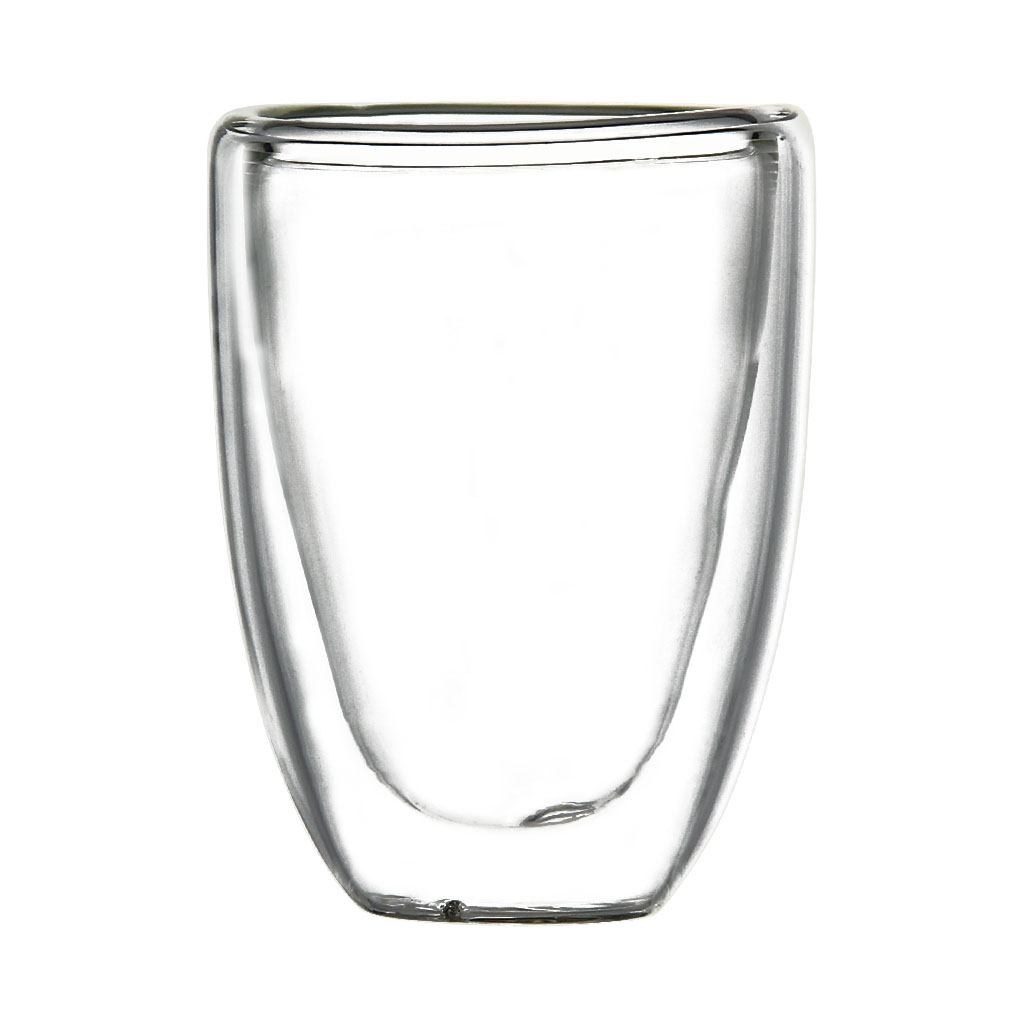 Высокая чашка слегка округлой, суженной к низу формы из жаропрочного стекла, с двойными стенками с воздушной прослойкой, сохраняет температуру напитка не проводя тепло на внешнюю поверхность. В наборе из 6 штук.