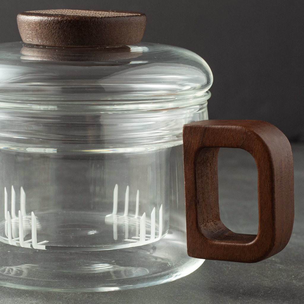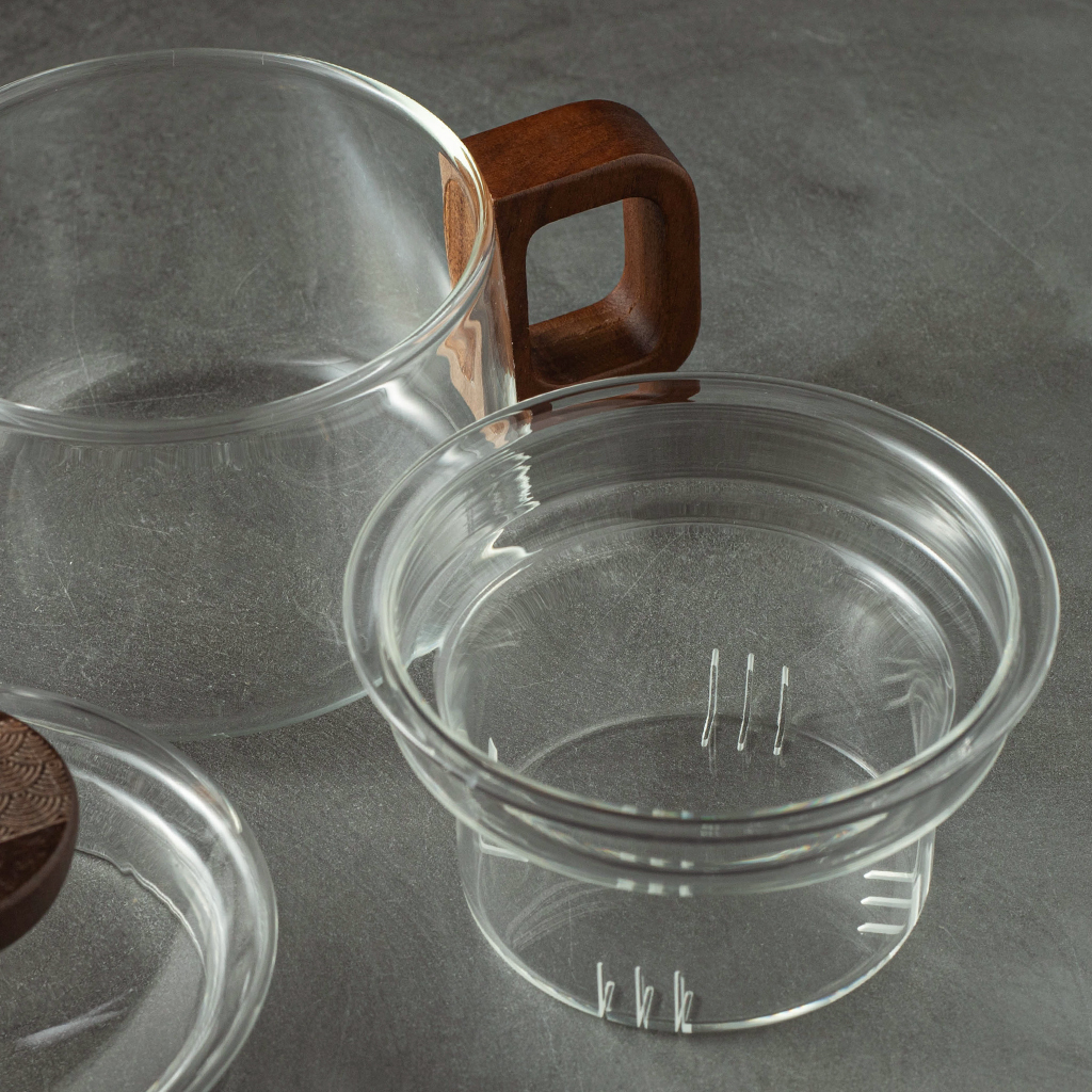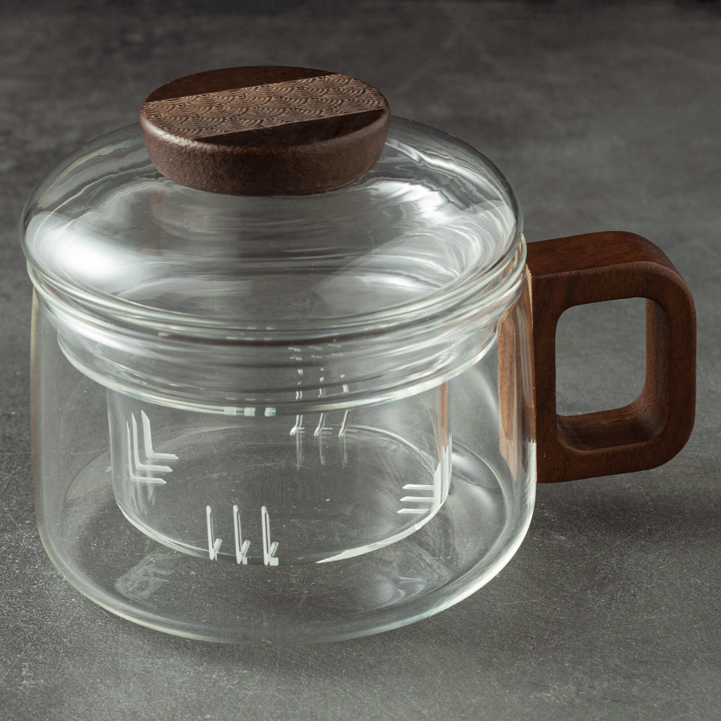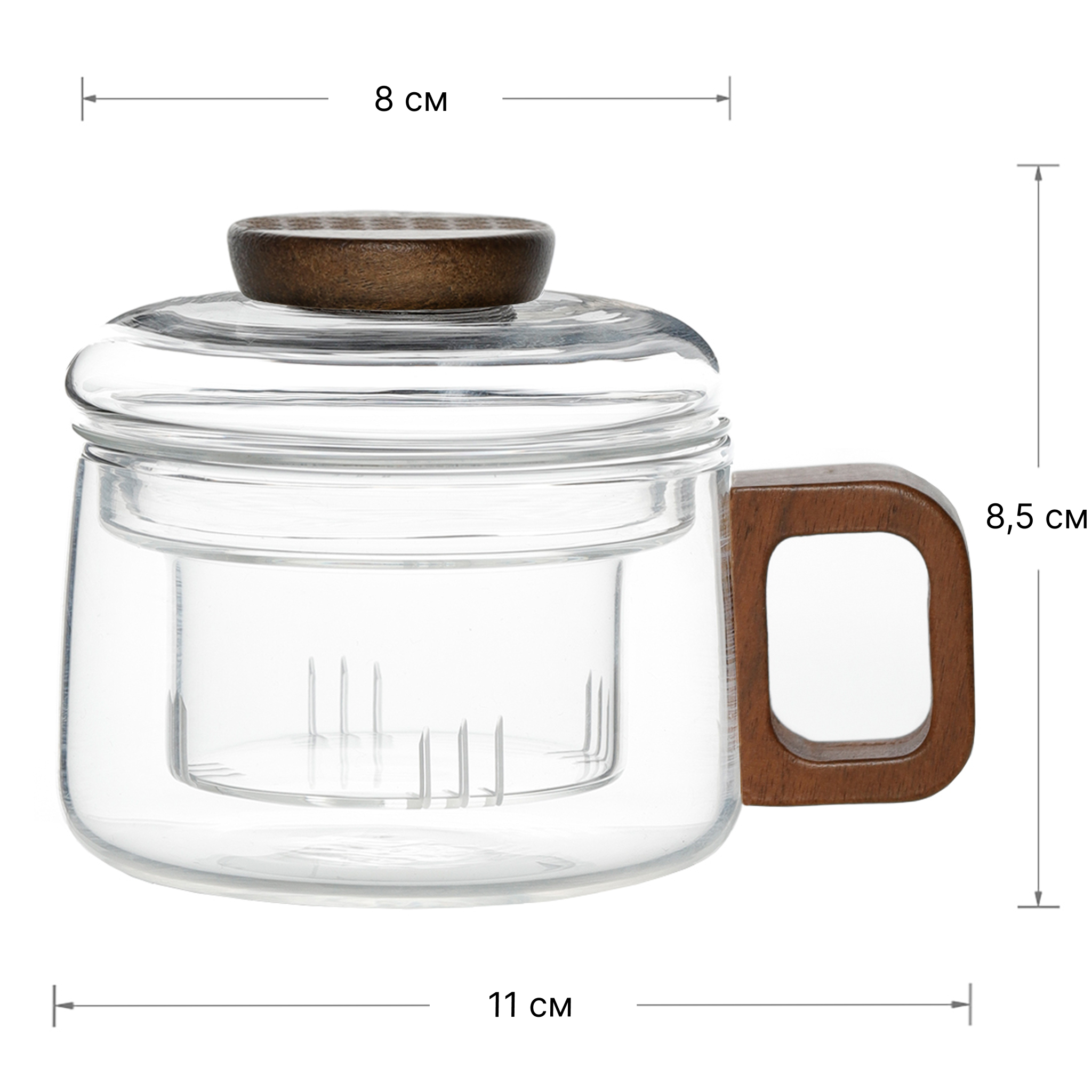 Маленькая чайная чашка с ситом колбой и крышкой из стекла