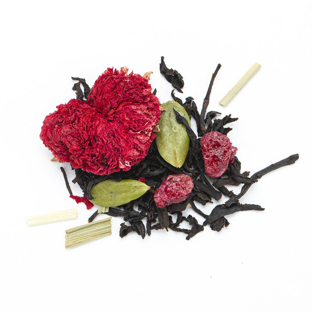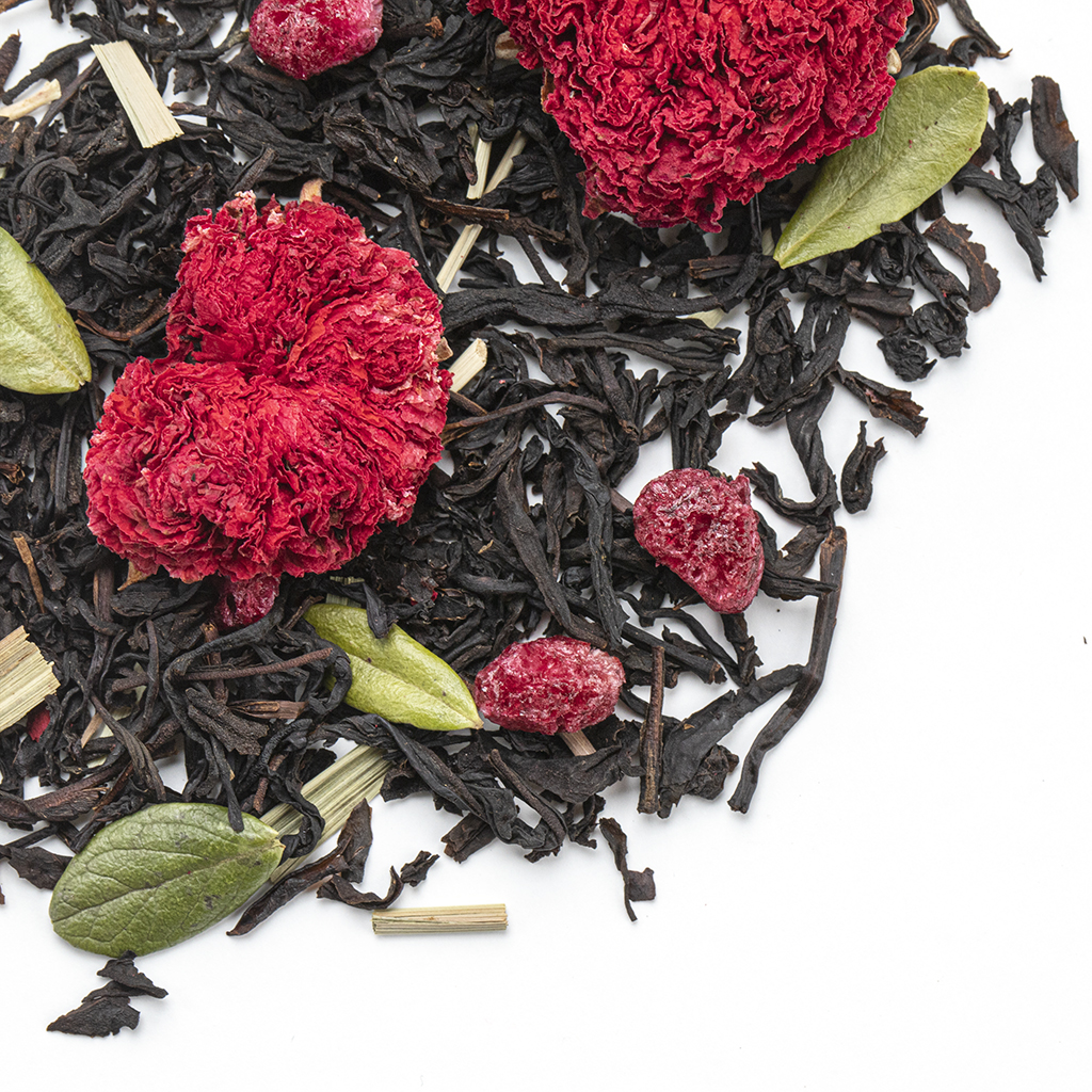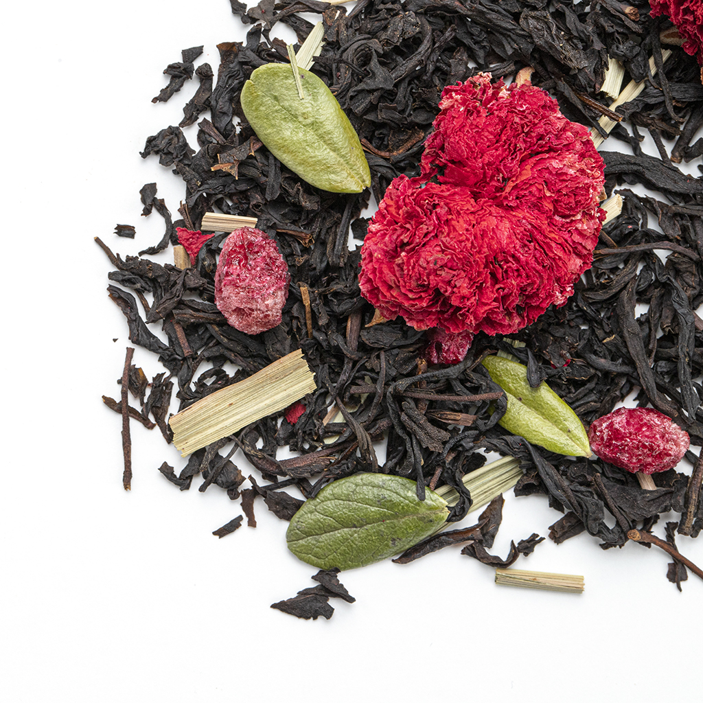 Чай черный индийский, цветы граната, зерна граната, лимонная трава, лист брусники, аромат сочного граната