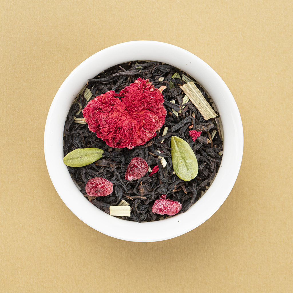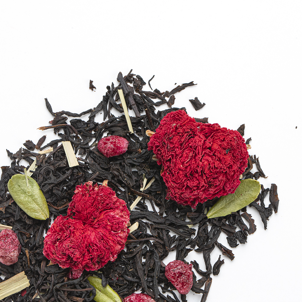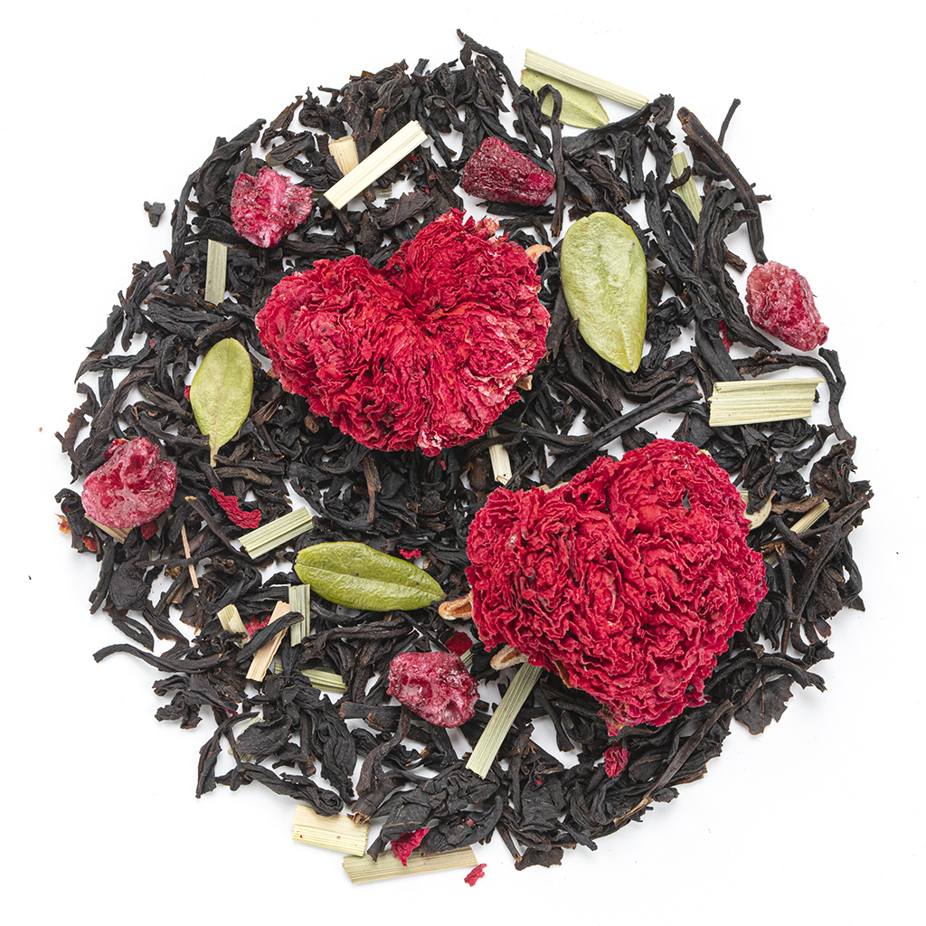 Чай черный индийский, цветы граната, зерна граната, лимонная трава, лист брусники, аромат сочного граната