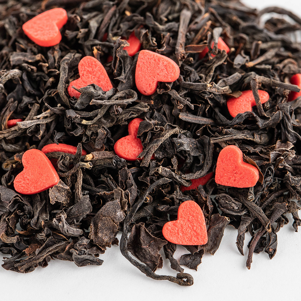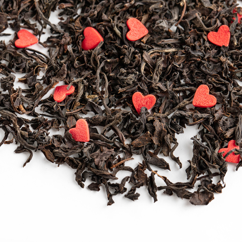 Чай черный индийский, посыпка декоративная кондитерская "Сердечки", аромат "Фруктовый десерт"