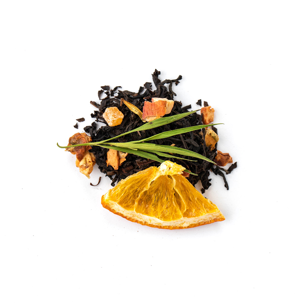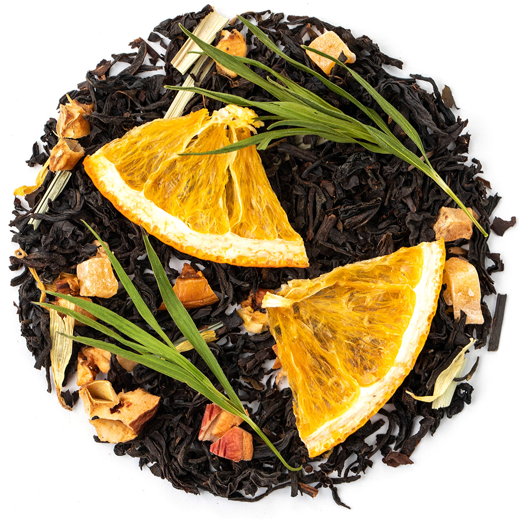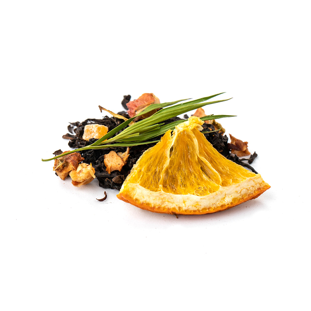 Состав: Чай черный индийский, яблоко кусочки, ананас цукаты, апельсин сегмент, лимонная трава, календула лепестки, бамбук листья. аромат "Экзотический микс".