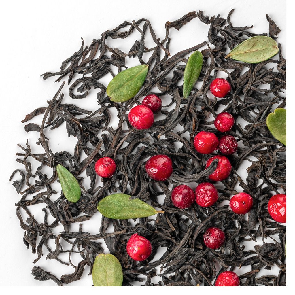 Чай черный цейлонский, ягоды брусники, листья брусники, ароматизатор "Ягодное лукошко"