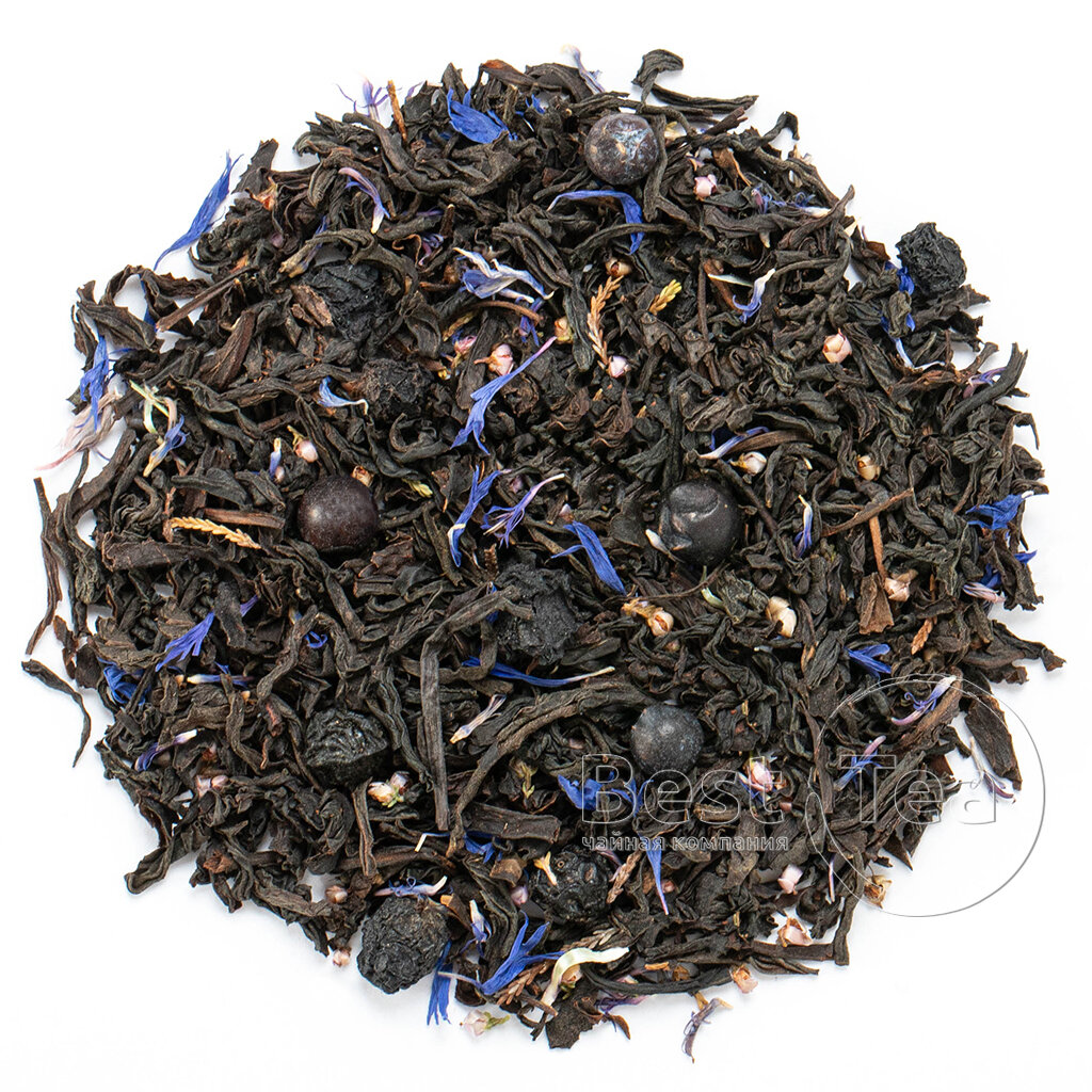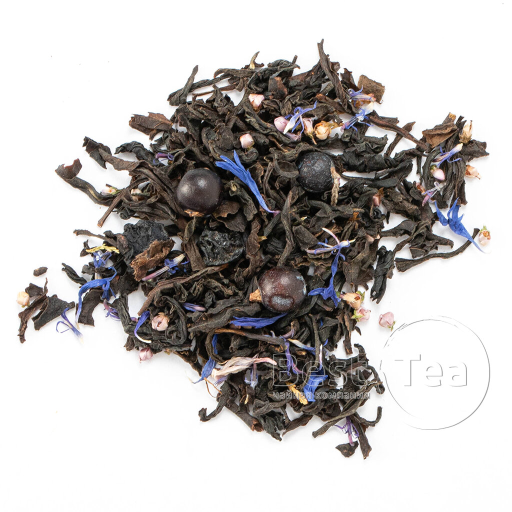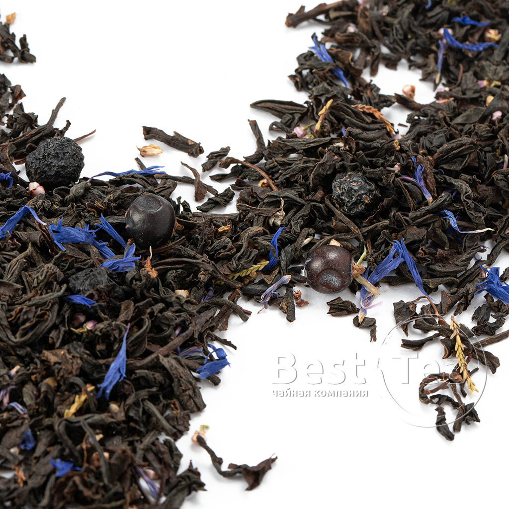 Состав: чай черный индийский, плоды аронии, плоды можжевельника, плоды черемухи, цветы вереска, василек синий, аромат малины, аромат брусники