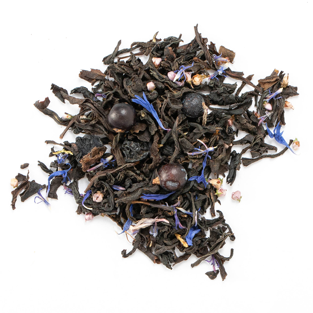 Состав: чай черный индийский, плоды аронии, плоды можжевельника, плоды черемухи, цветы вереска, василек синий, аромат лесных ягод