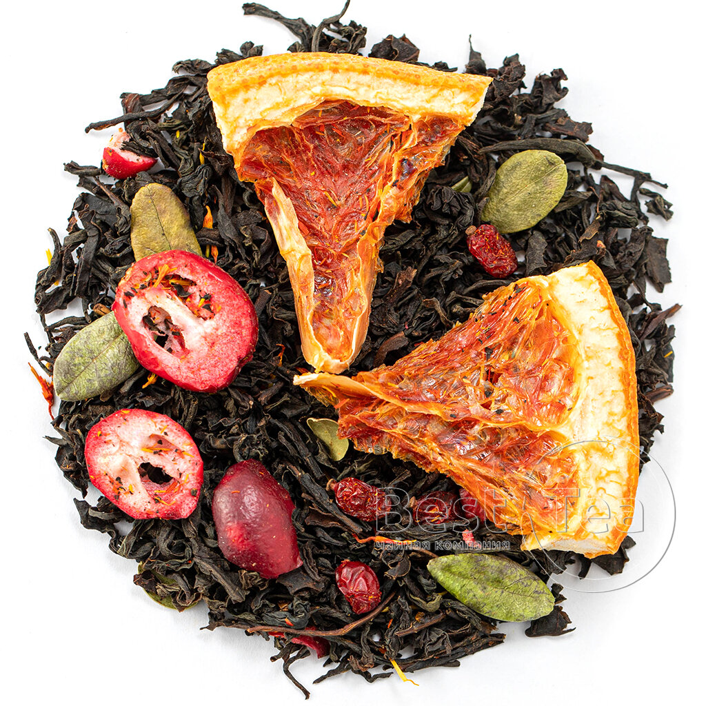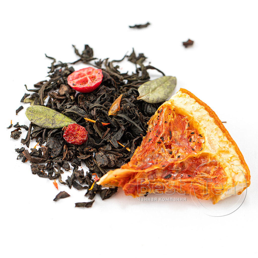 Чай черный индийский, грейпфрут сегменты, барбарис плоды, клюква слайсы, брусника лист, сафлор лепестки, экстракты грейпфрута и клюквы.