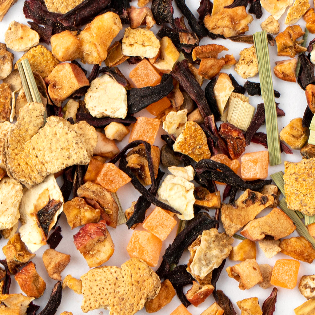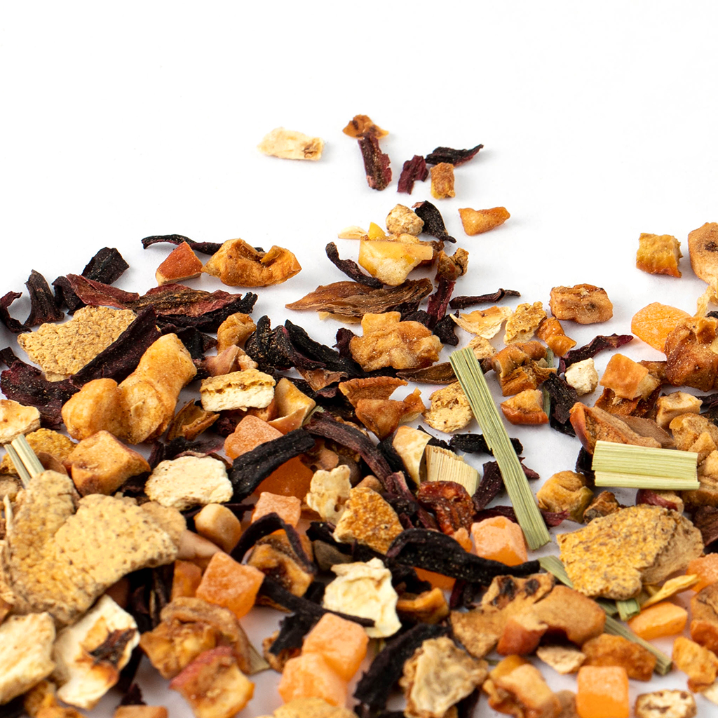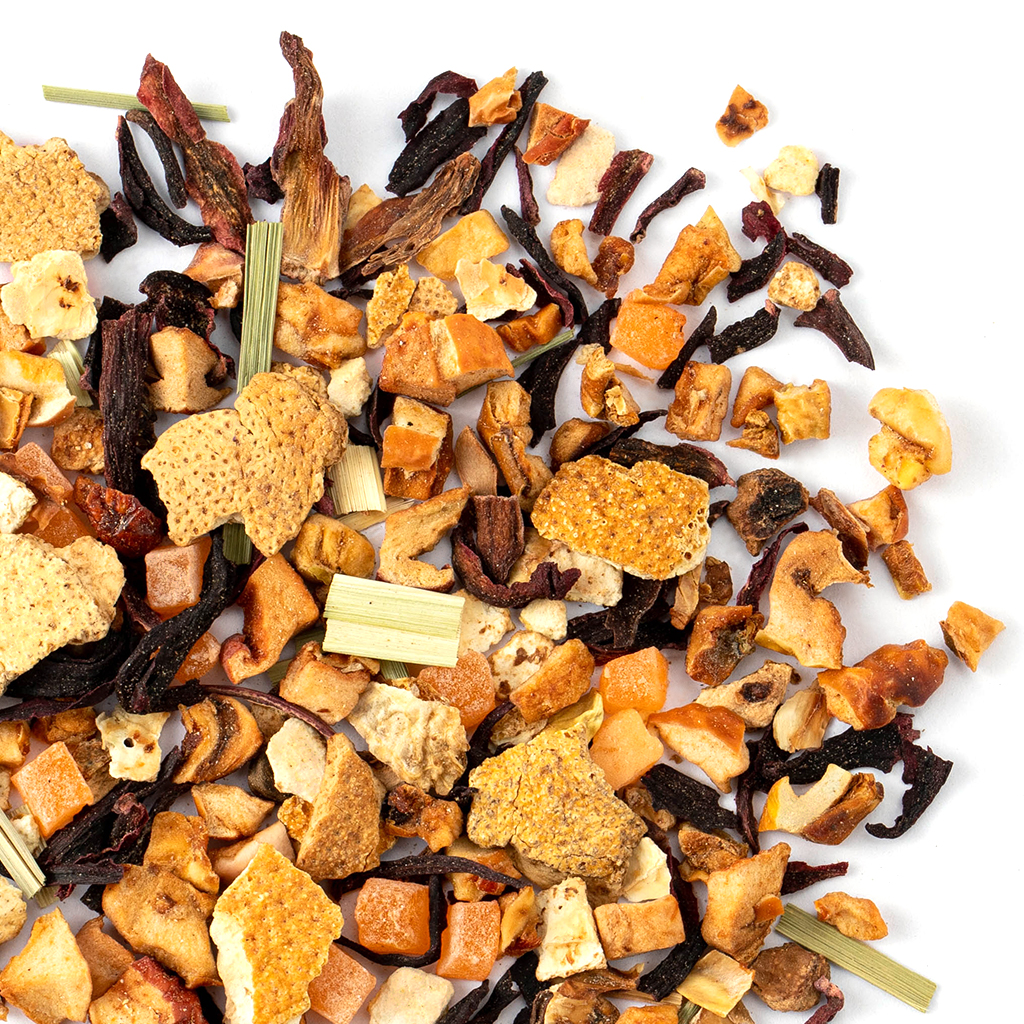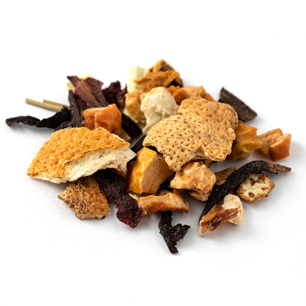 Цитрусовое солнце — яркий фруктовый чай с солнечным характером. Освежающая кислинка каркаде сочетается с сочным ананасом, яблоком и апельсиновой цедрой, а тропические ноты манго и цитрусов наполняют вкус теплом и энергией. Такой насыщенный и ароматный напиток подарит заряд хорошего настроения на целый день.