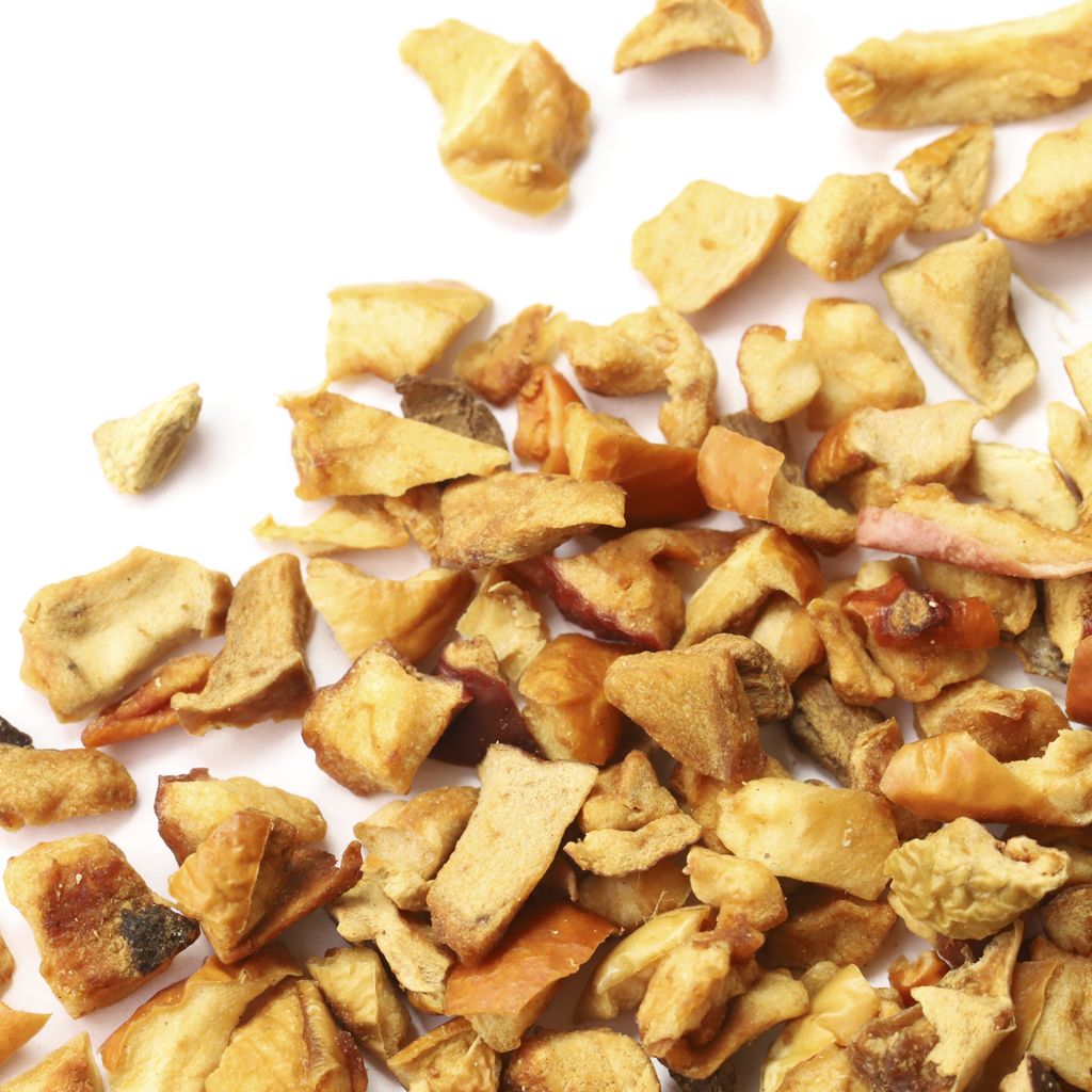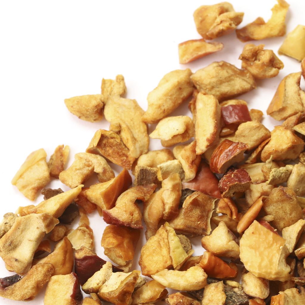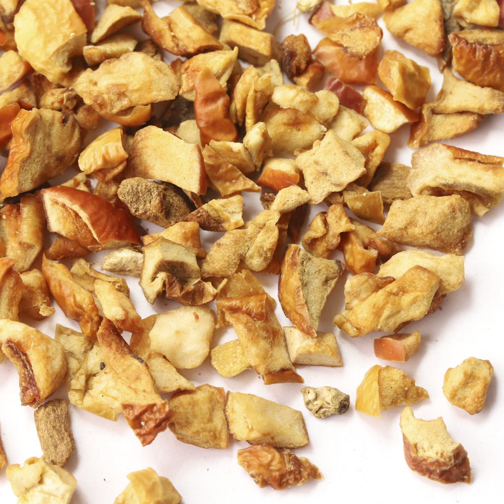 Кусочки яблок, кусочки имбиря, кусочки корицы, аромат меда.