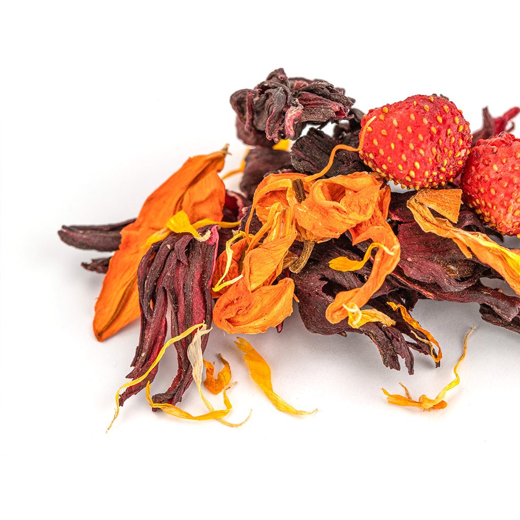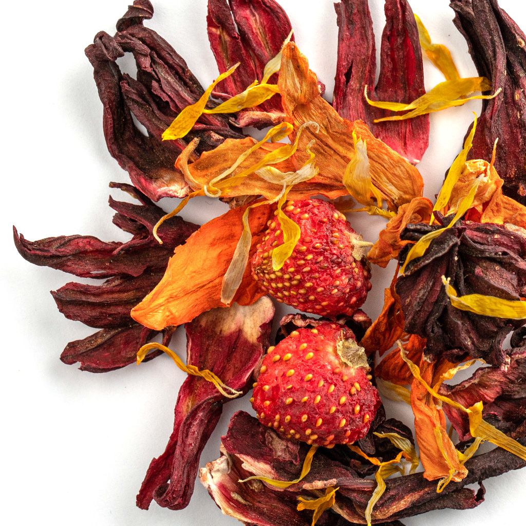 Каркадэ, клубника ягоды, лилия цветы, календула лепестки, ароматизатор "Клубника со взбитыми сливками".