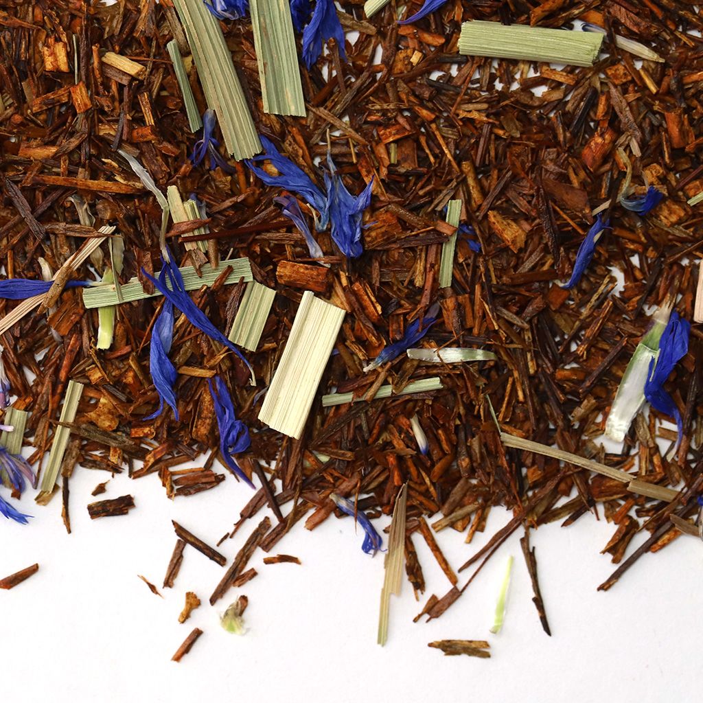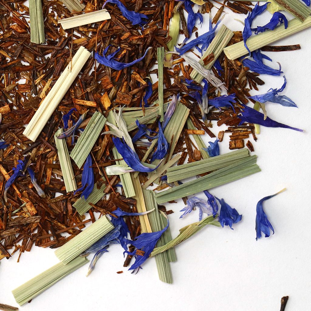 Ройбуш, лимонная трава(лемонграсс), василек, аромат грейпфрута и лайма.