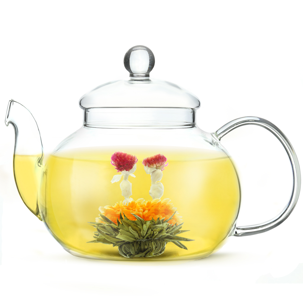 Цветочный чай из Китая считается самым красивым чаем. Чайные листья свернуты в форме бутона. Каждый такой клубочек - это маленькое чудо, которое хранит свой сюрприз. Лучше всего заваривать в прозрачной посуде, чтобы воочию увидеть волшебство при распускании цветка.