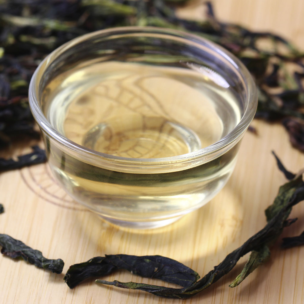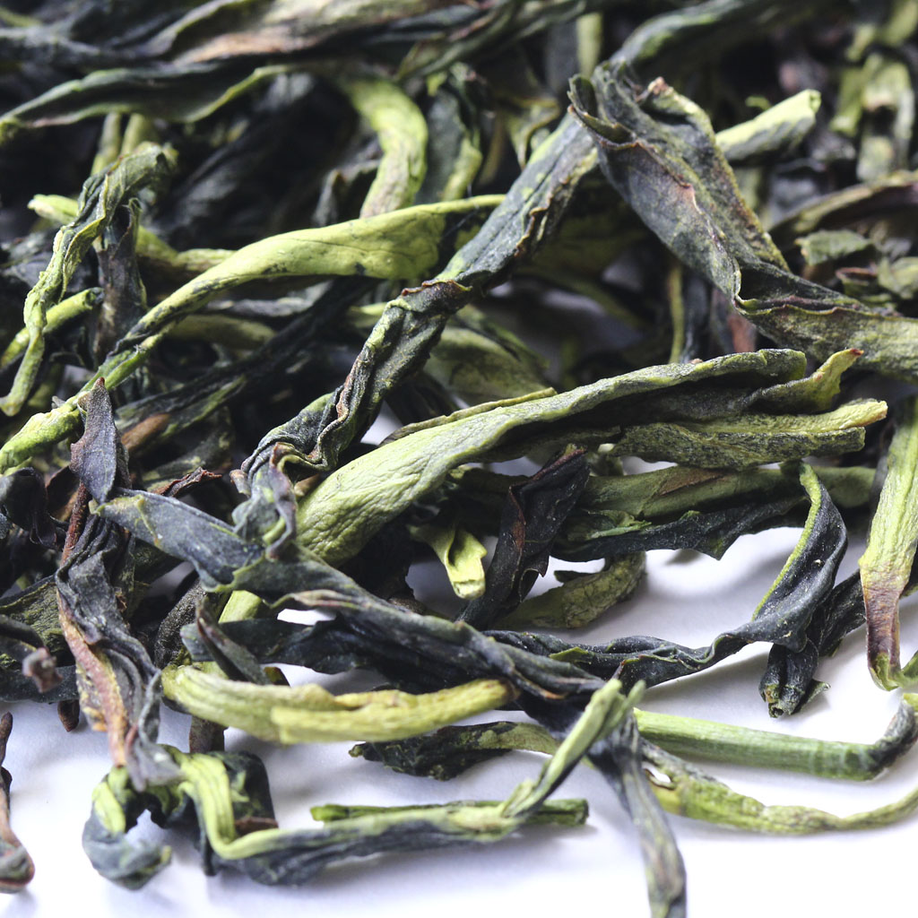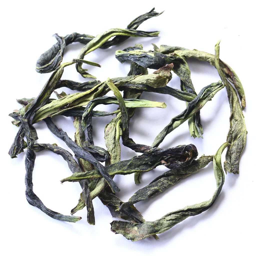 Светлый улун, сухая россыпь которого составлена из крупных цельных листочков продольной скрутки и окрашена в оттенки изумрудного.