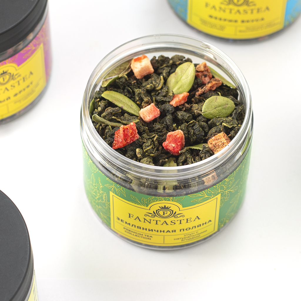 Чай китайский улун, кусочки клубники, листья брусники, аромат земляники