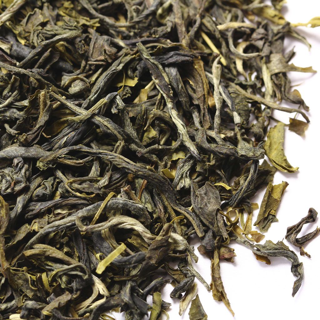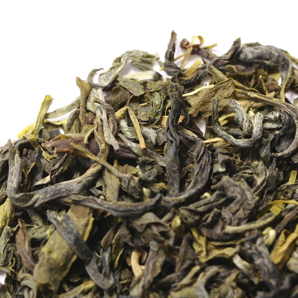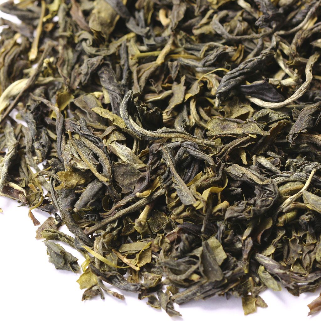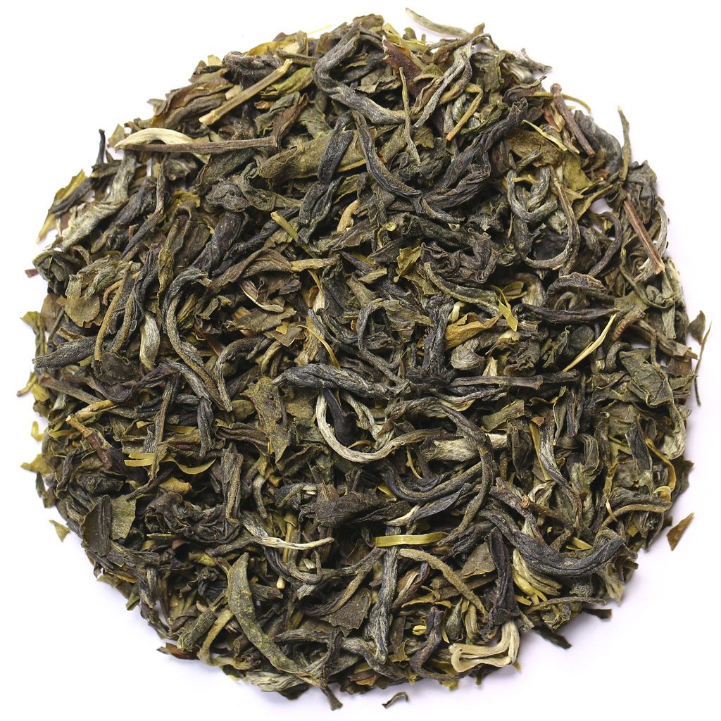 Сухая россыпь всех оттенков зеленого составлена из среднего слегка скрученного листа с некоторым количеством почек.