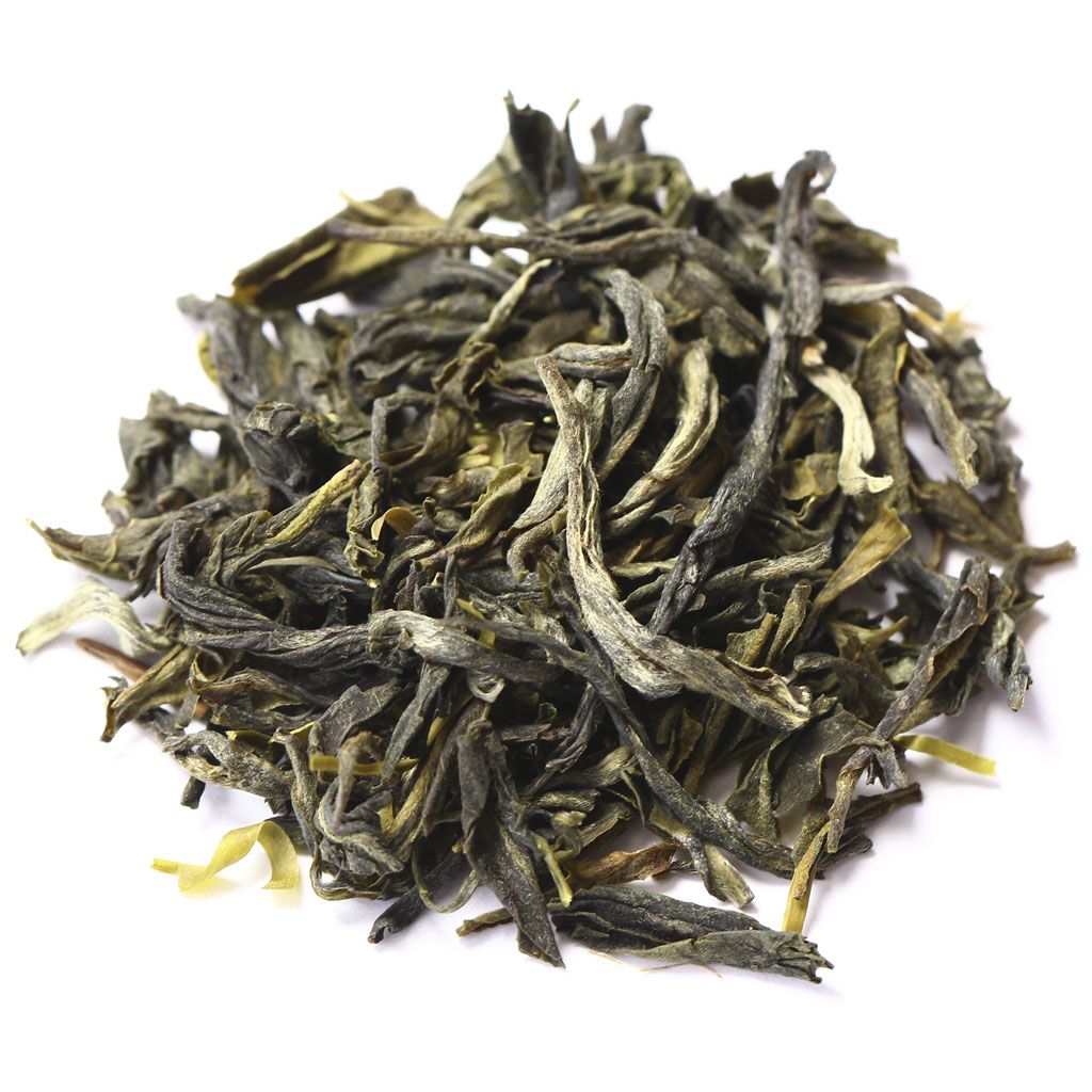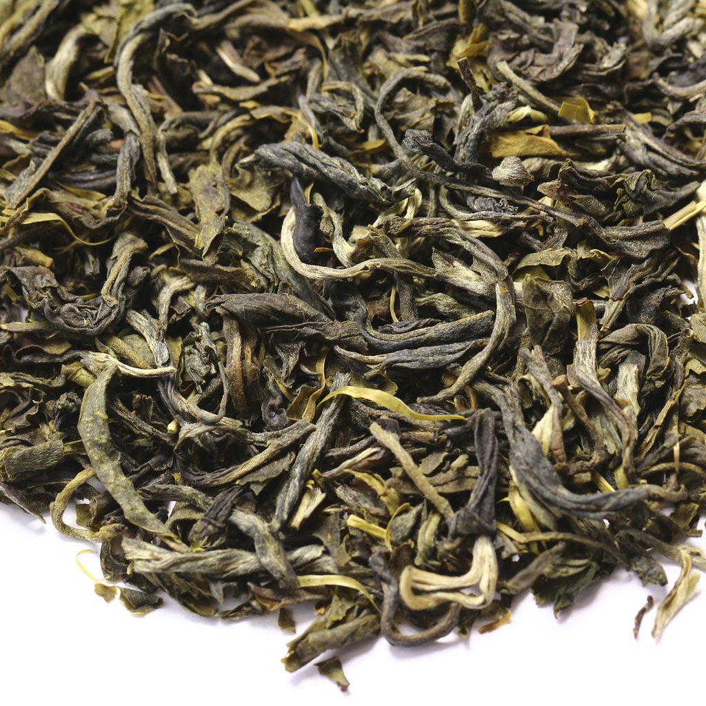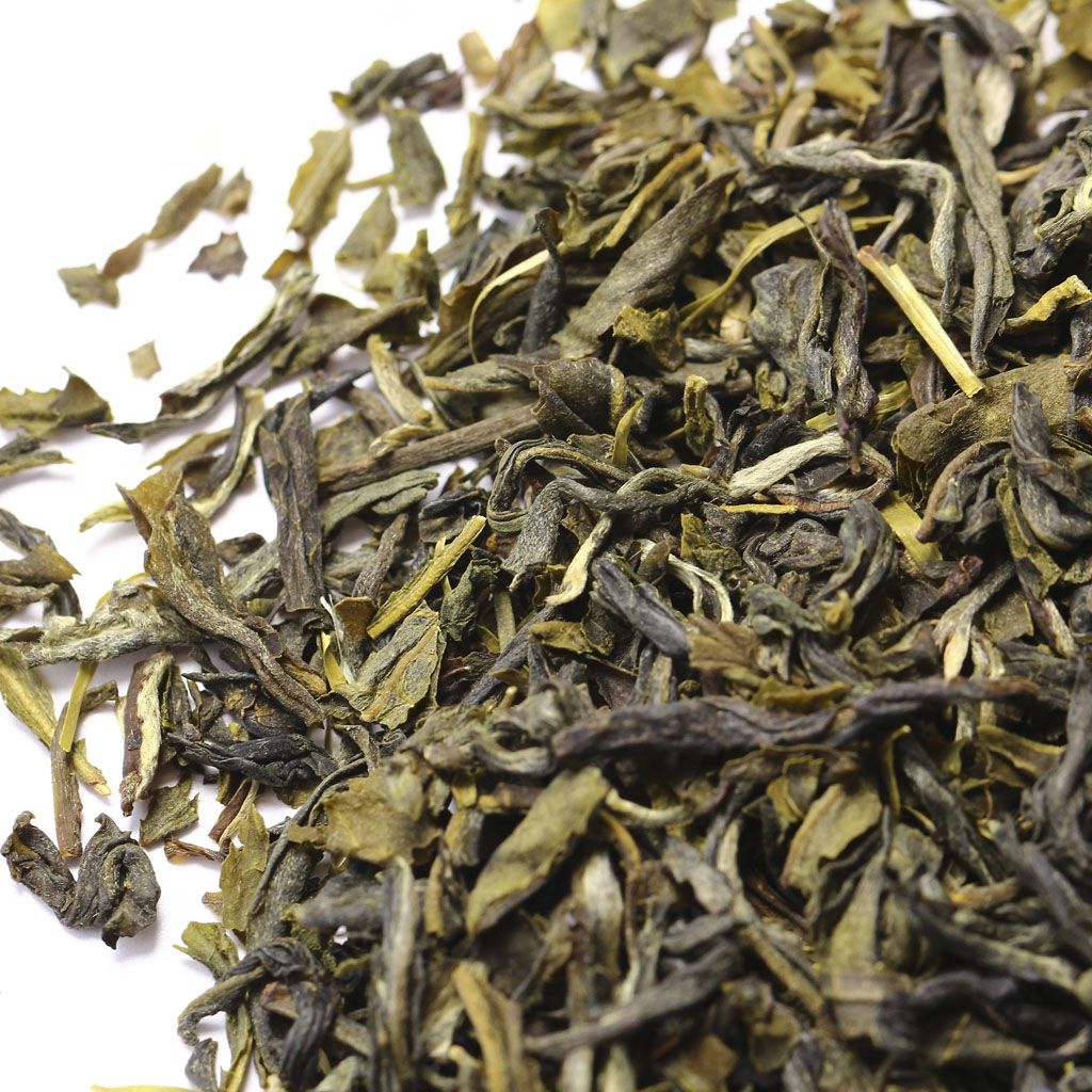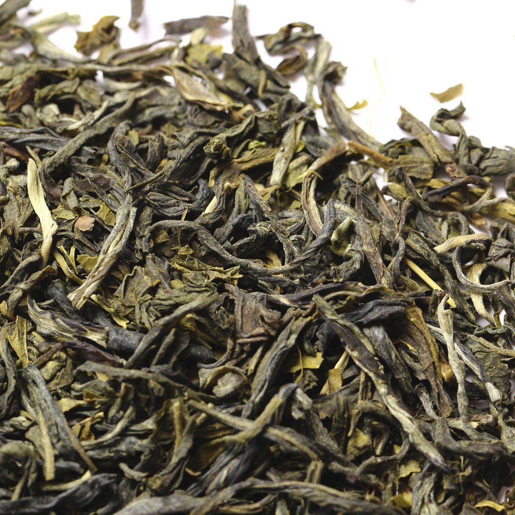 Сухая россыпь всех оттенков зеленого составлена из среднего слегка скрученного листа с некоторым количеством почек.