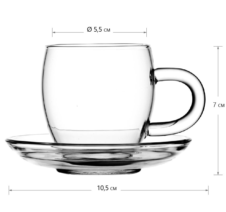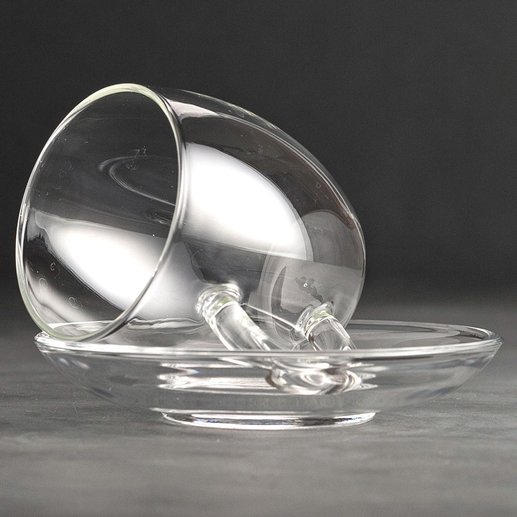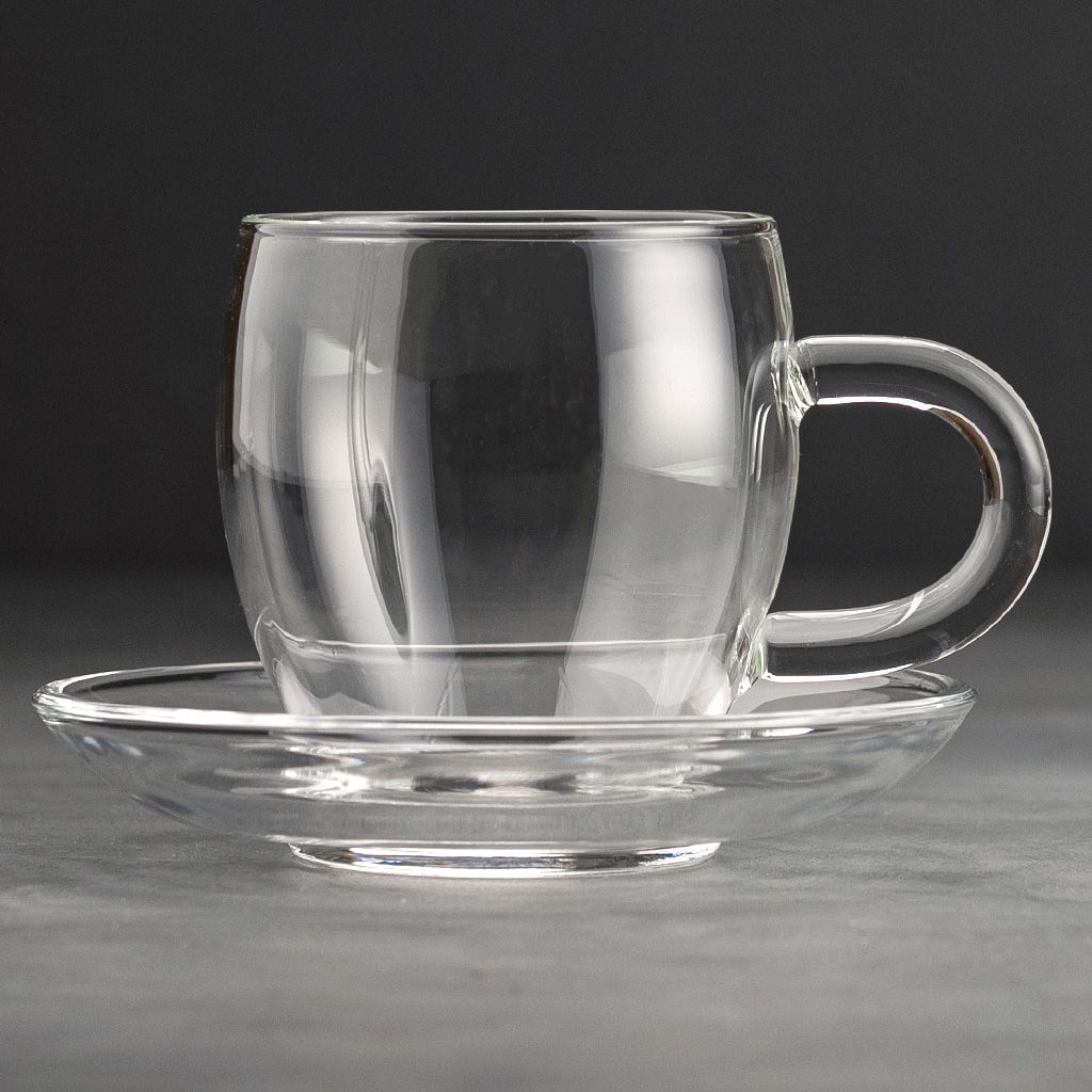 Чайная пара выполнена из термостойкого боросиликатного стекла. Чашка сохраняет температуру напитков и не обжигает пальцы. Изысканный набор подходит тем, кто предпочитает не спеша наслаждаться горячим чаем или кофе. Также чайная пара подойдет и для прохладительных напитков. Не впитывает цвета и запахи напитков. Перед первым использованием рекомендуется помыть с мыльным раствором, на посуде могут сохраняться следы пыли. Отличный вариант для подарка друзьям, коллегам, близким и родным.