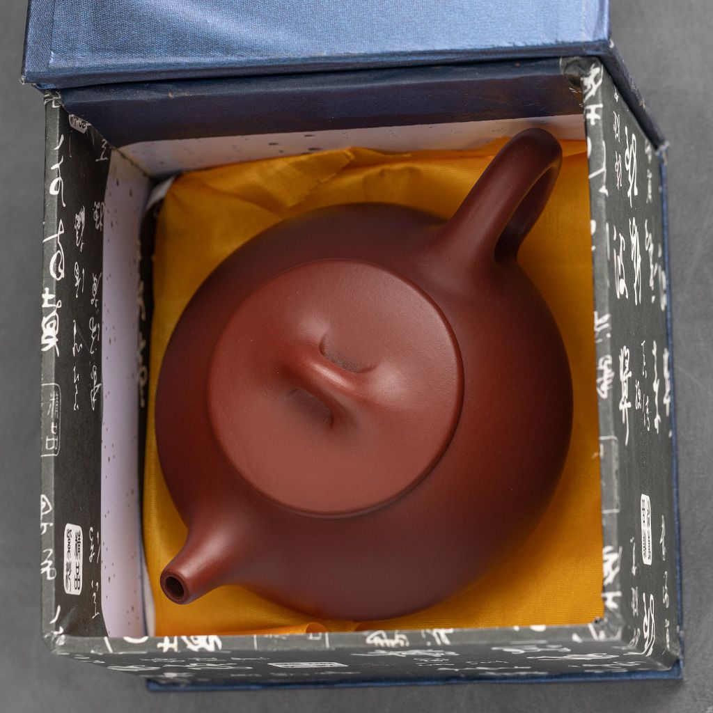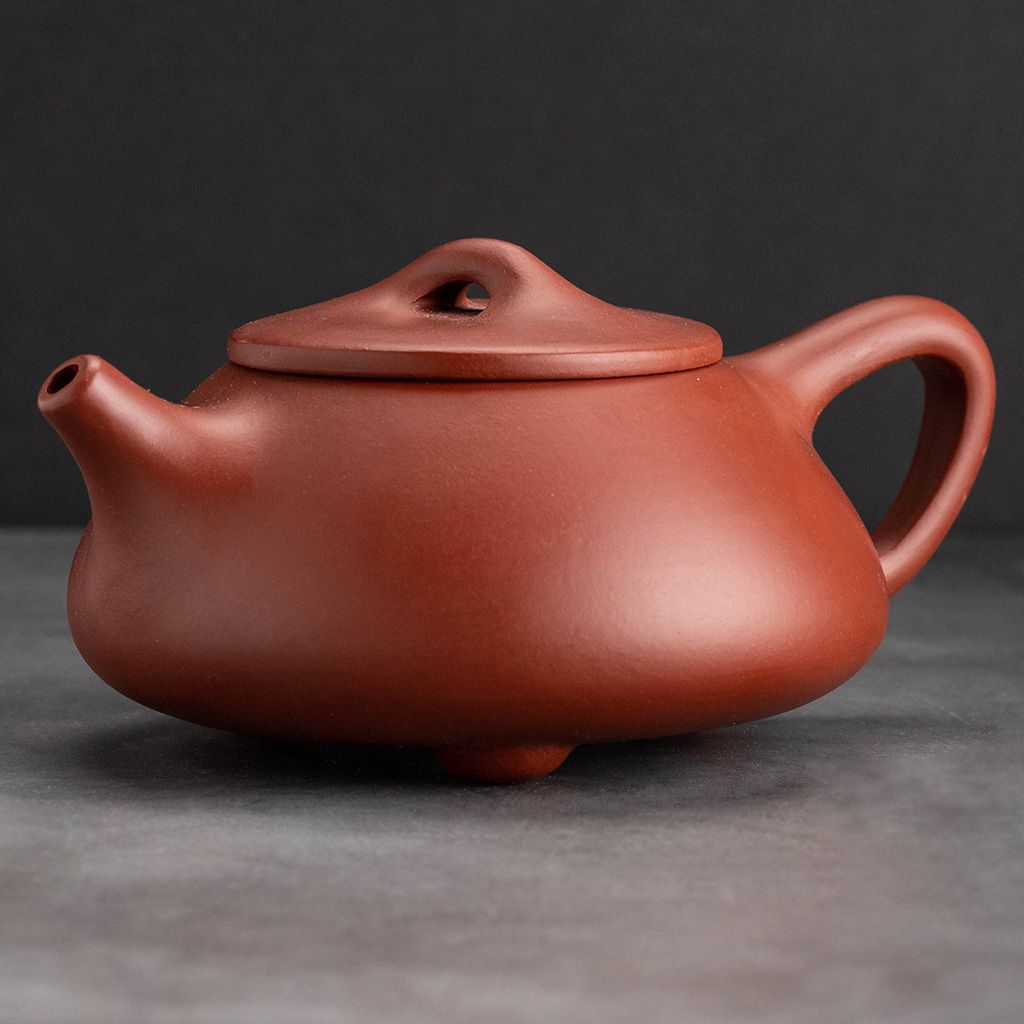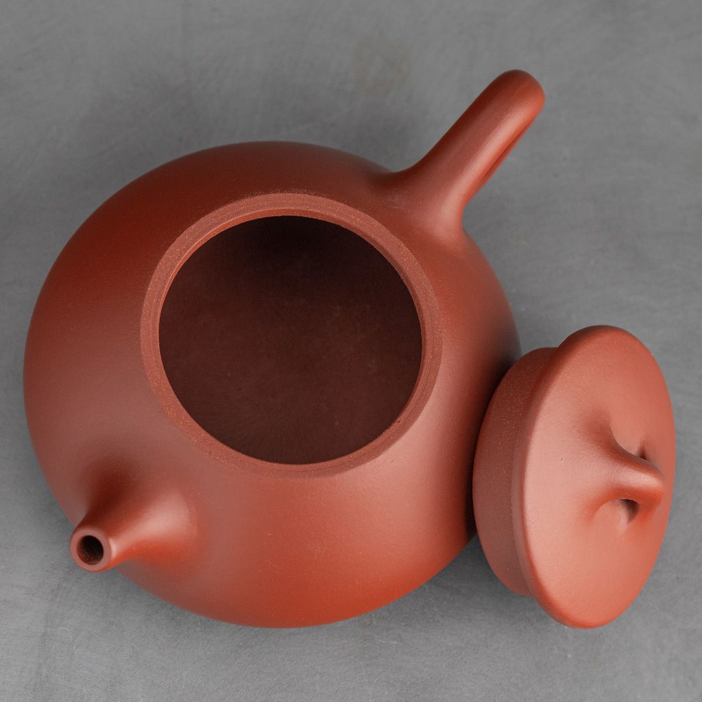Чайник из гладкой глины, форма "ши пяо". Высокое качество исполнения, быстрый слив. Без узоров. Объем: 200 мл.