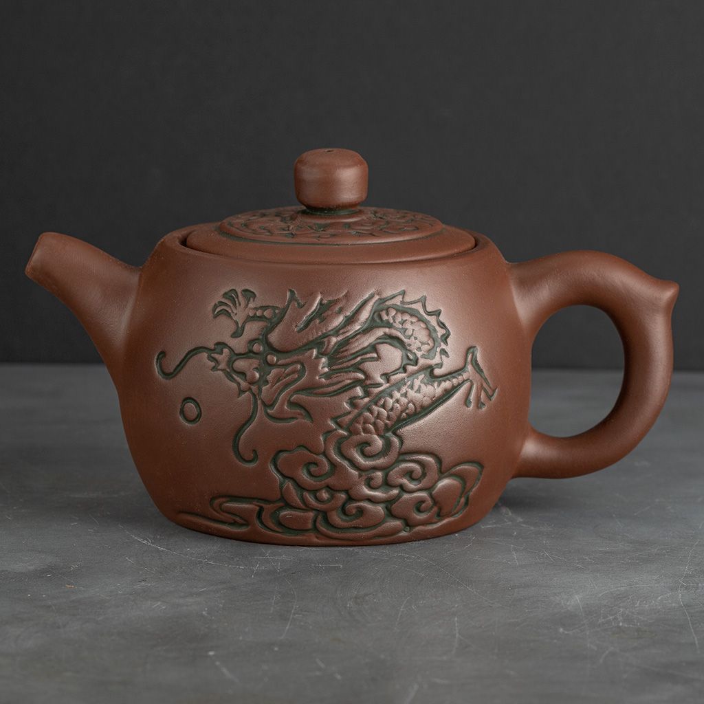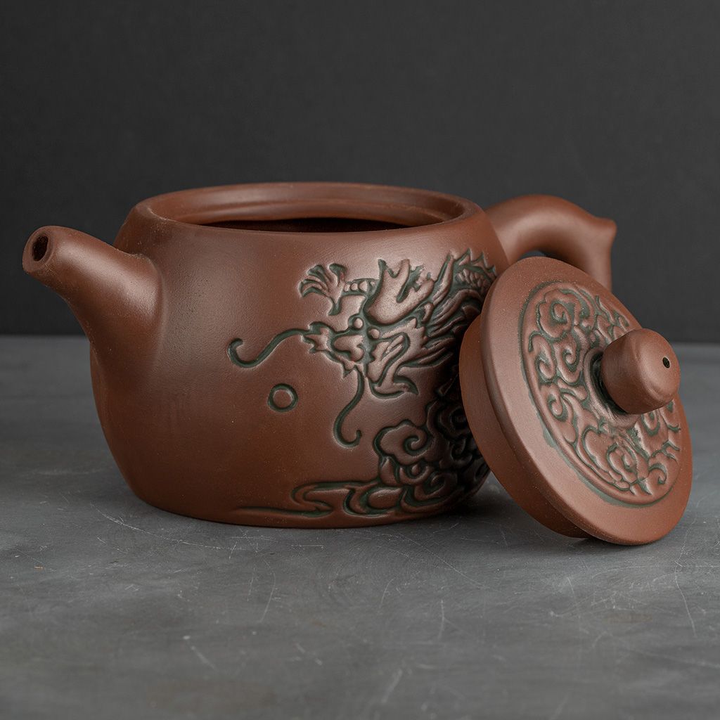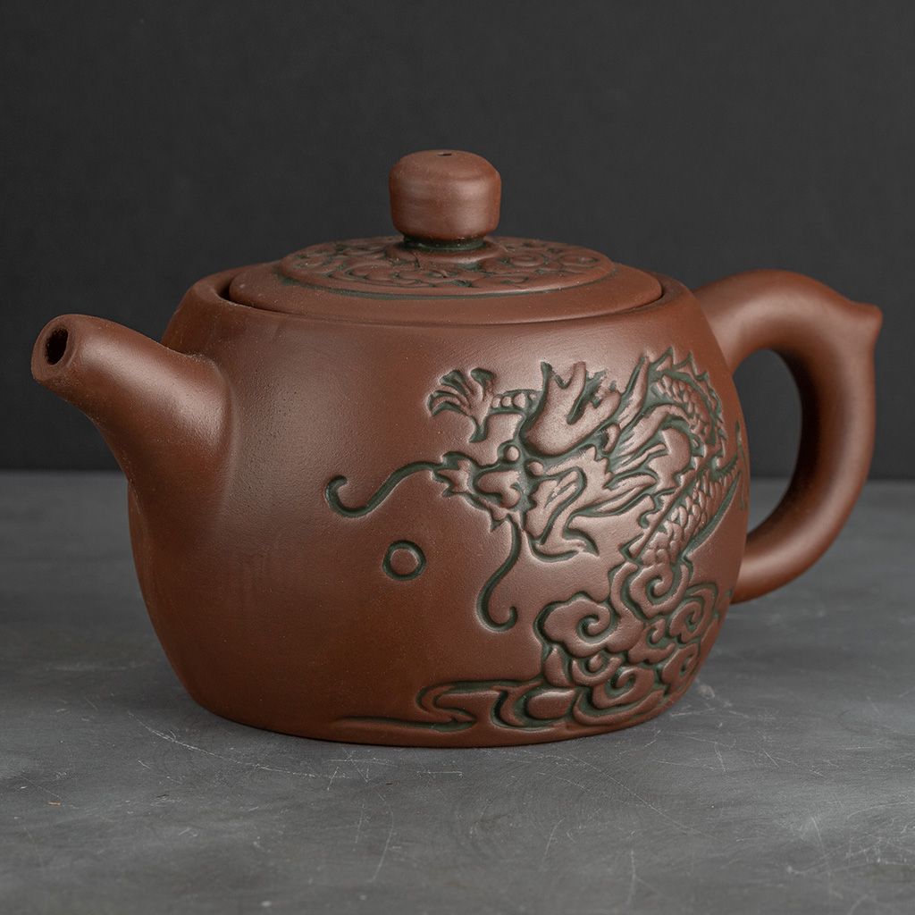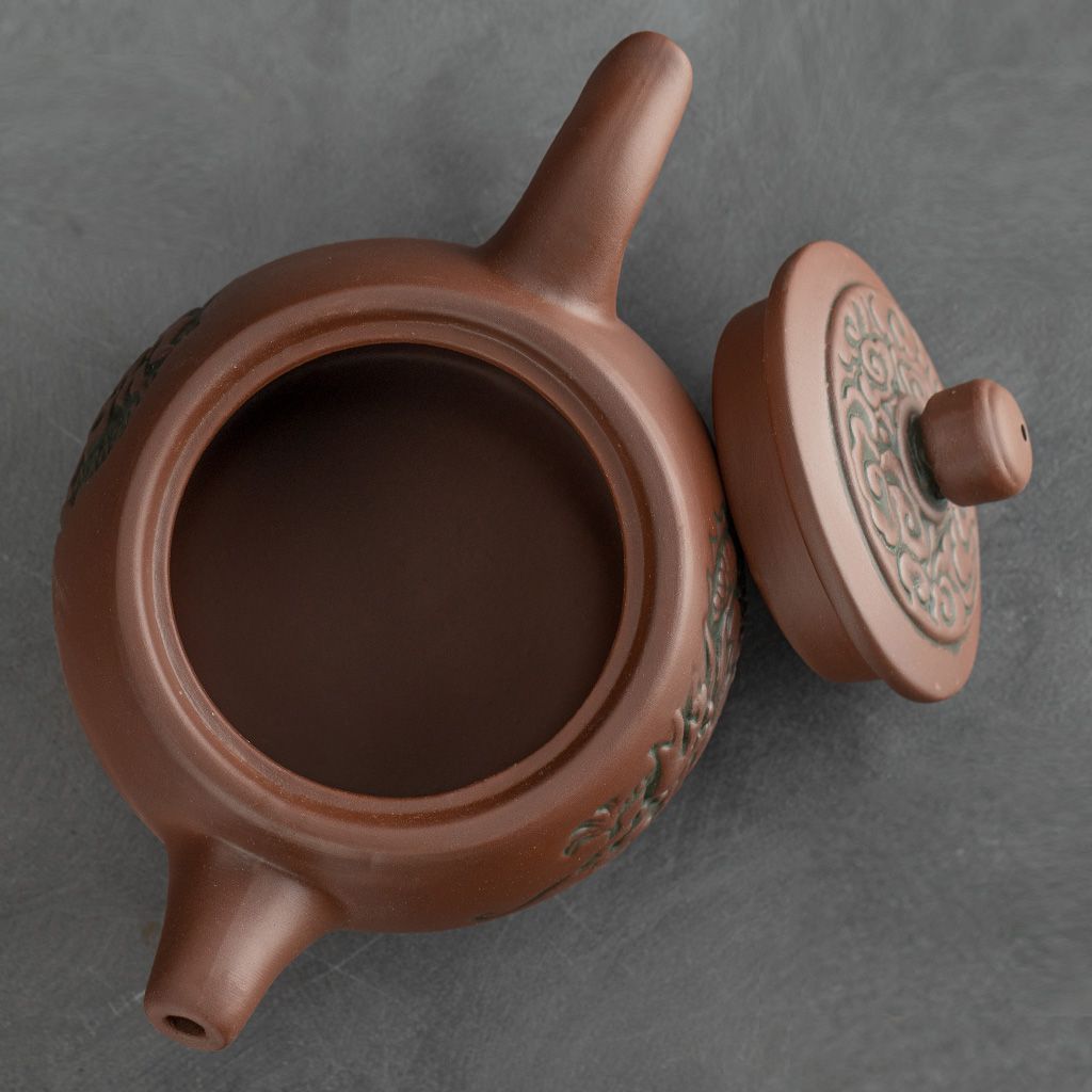 Классический заварочный чайник из глины. Тактильно приятная поверхность. Украшен фактурными узорами. Ровный аккуратный слив.