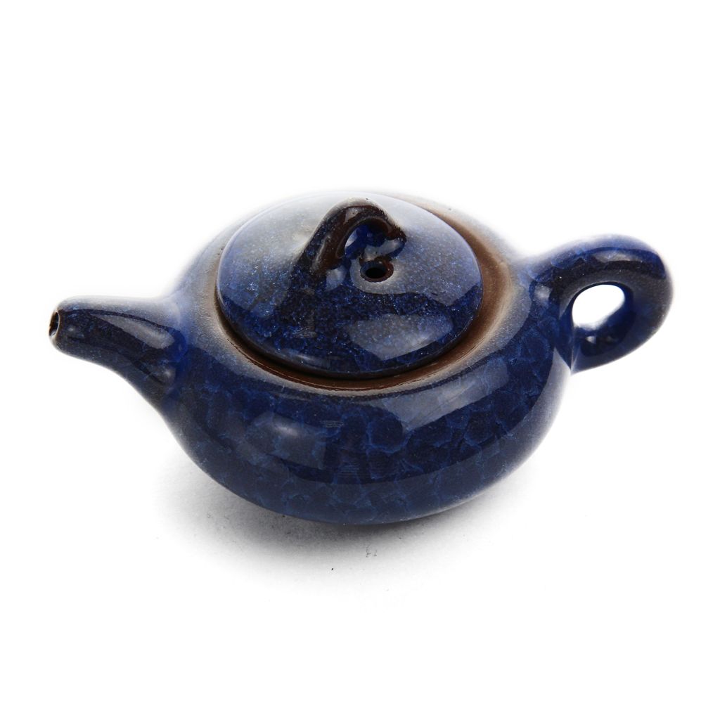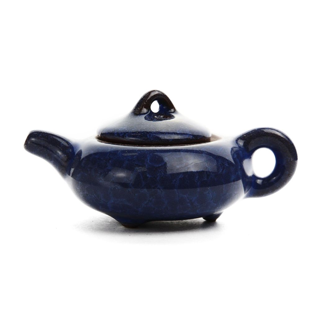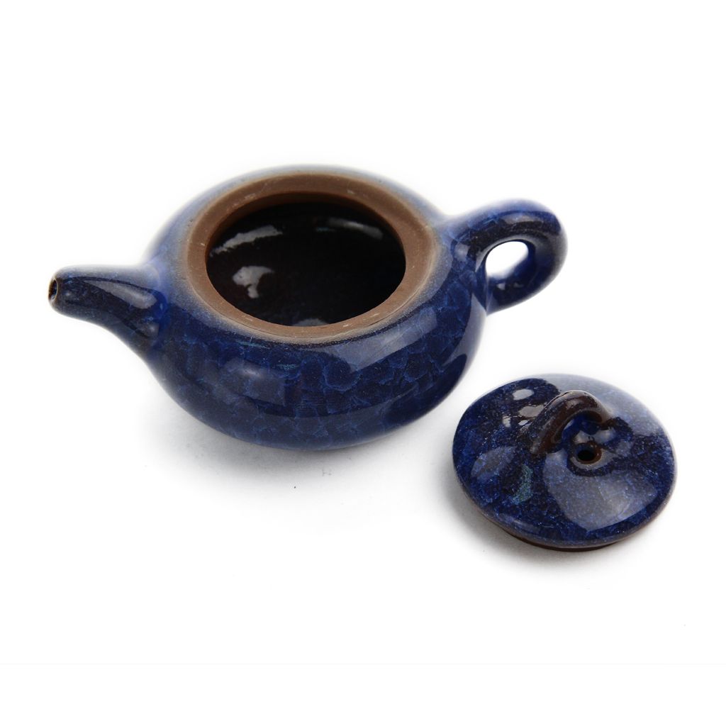 Маленький заварочный чайник округлой приплюснутой формы, из керамики, покрытой фиолетовой глазурью