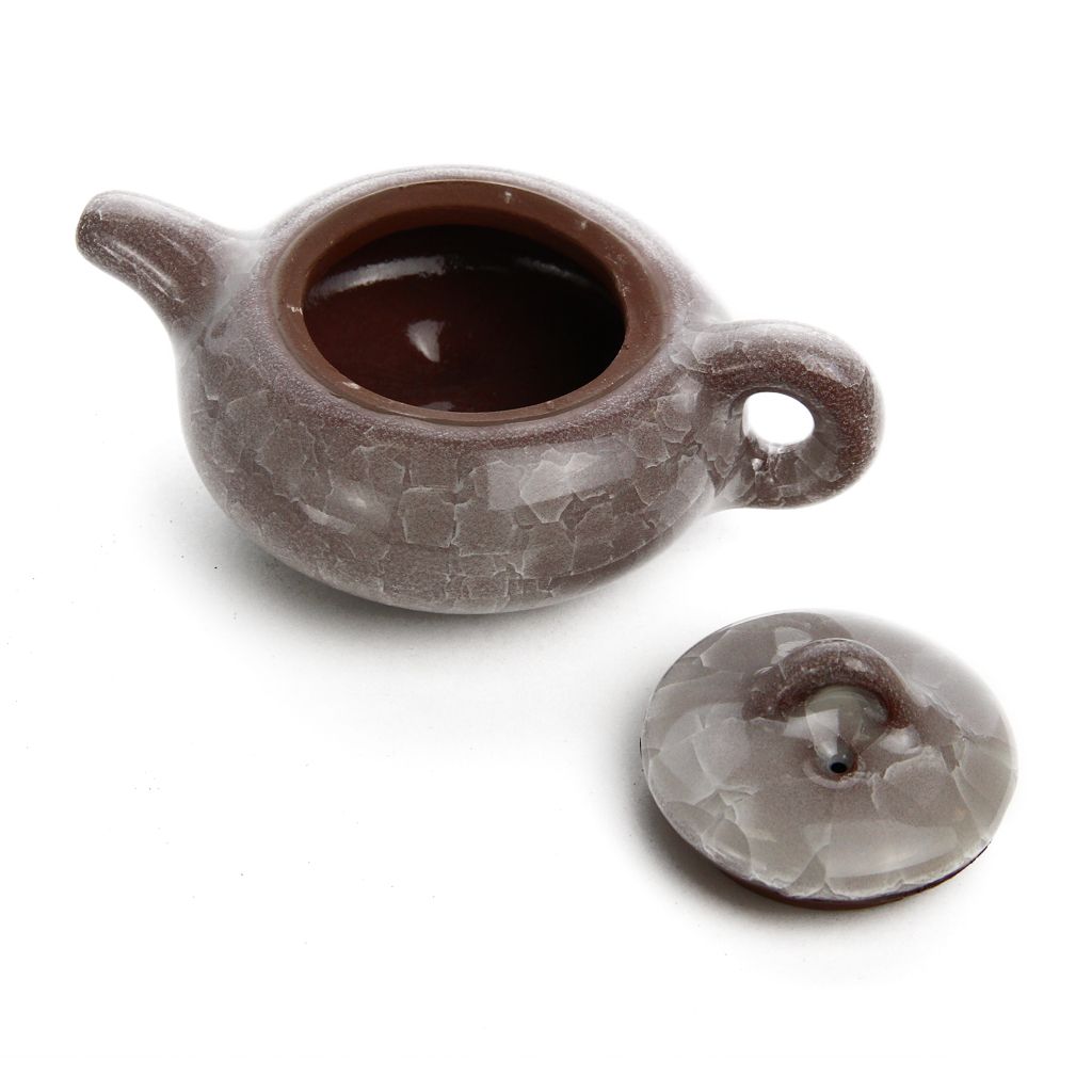 Маленький заварочный чайник округлой приплюснутой формы, из керамики, покрытой сиреневой глазурью