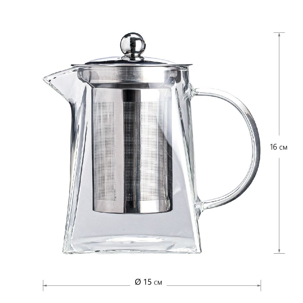 Чайник стеклянный заварочный с квадратным дном, 850 мл