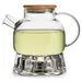 Заварочный чайник грушевидной формы, с коротким цилиндрическим носиком с пружинкой, широкой С-образной ручкой, из жаропрочного стекла цвета карамель/золото, объем 900 мл. Крышка деревянная, снизу окованная металлом с силиконовым ободком.