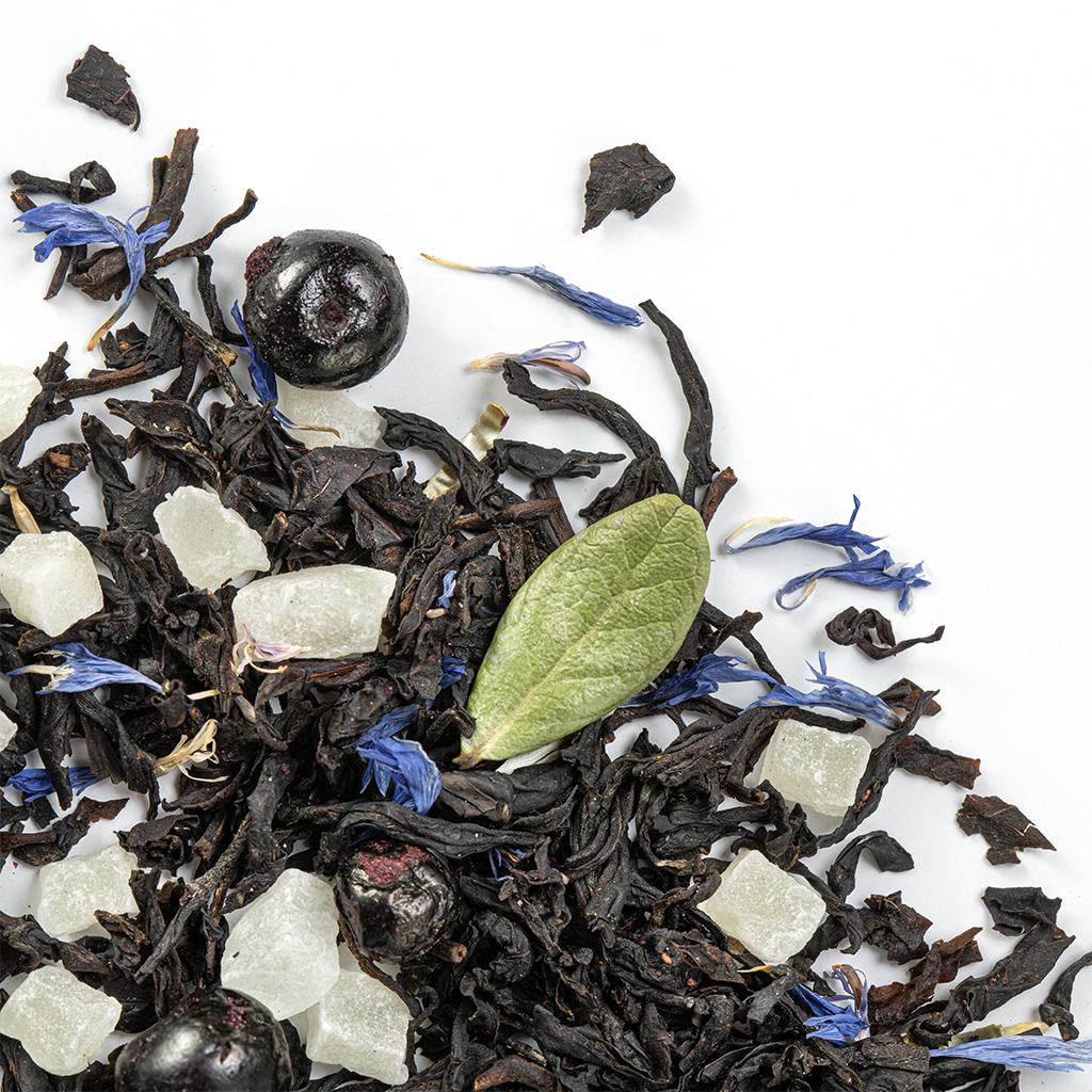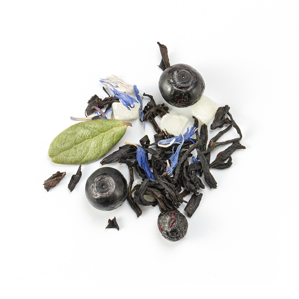 Чай черный индийский, кусочки ананаса, ягоды черники, лепестки василька, листья брусники, аромат лесных ягод