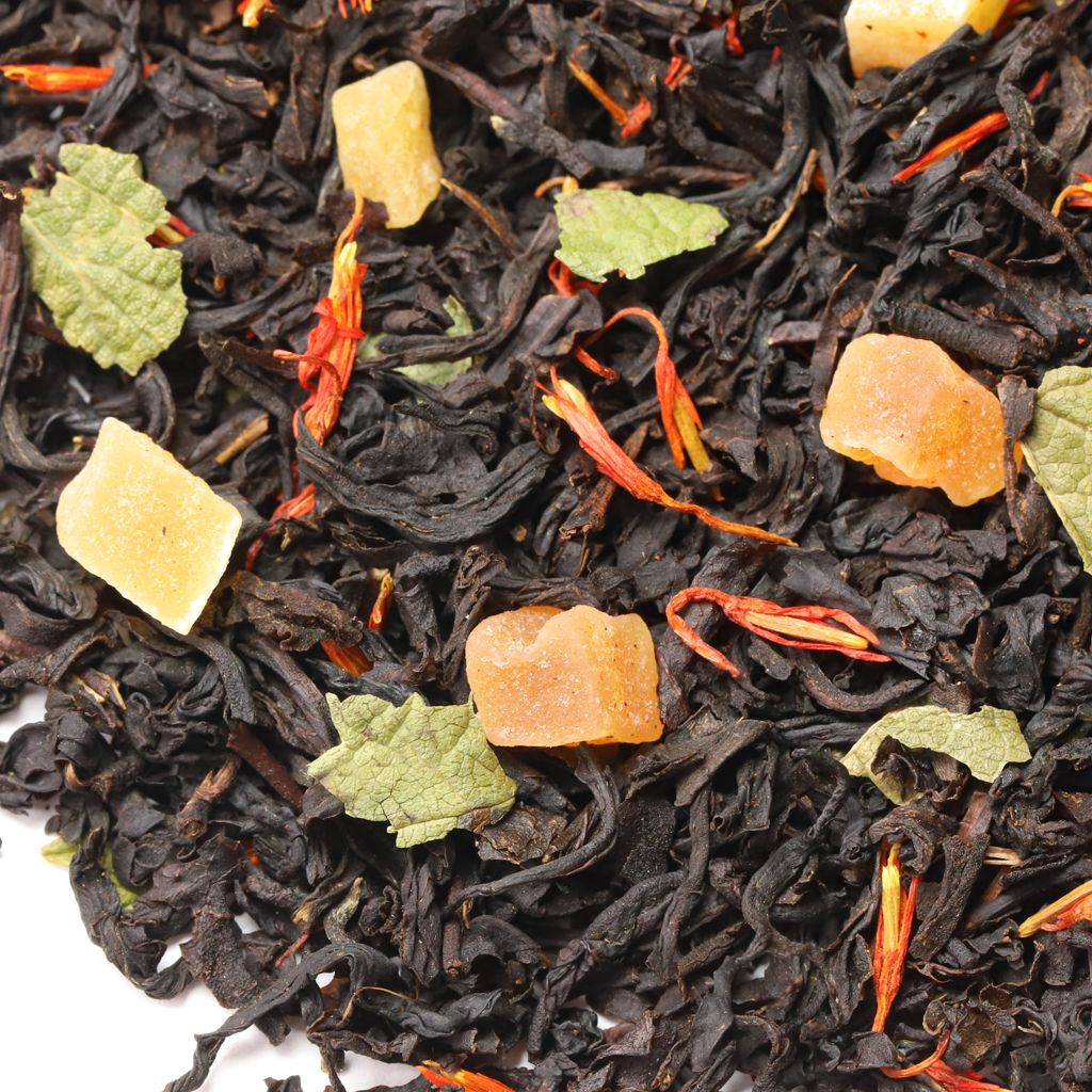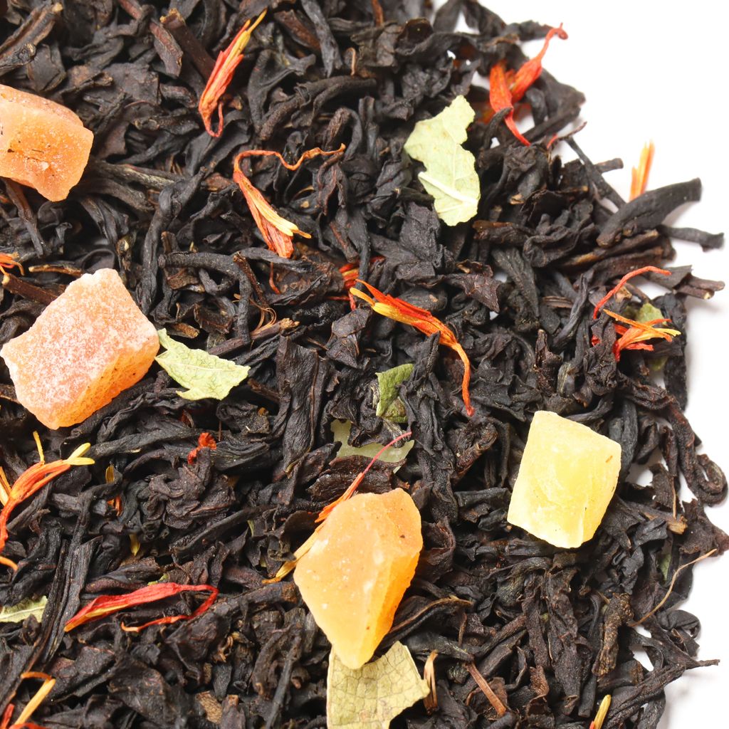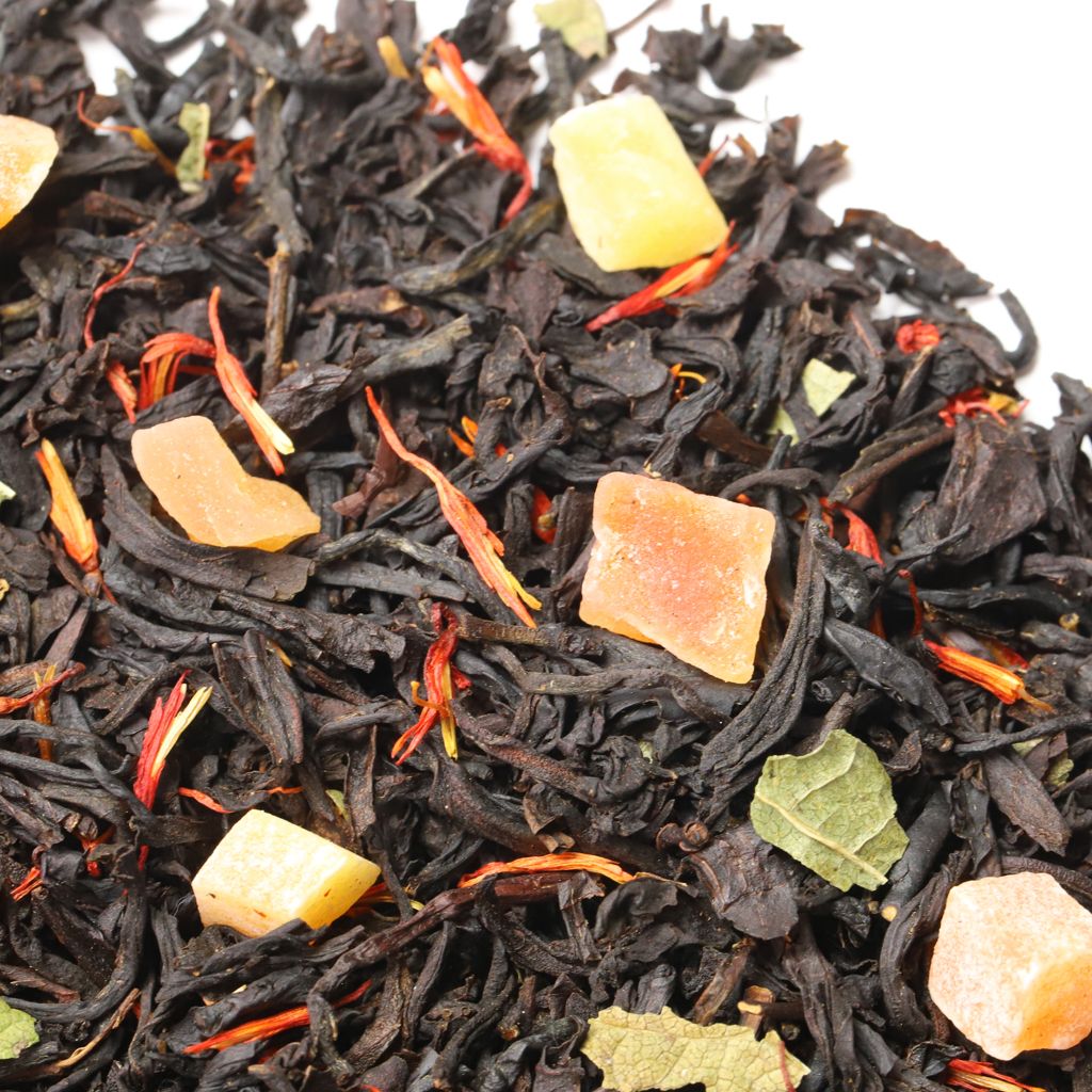 Смесь черных чаев, собранных на индийских плантациях, дополняется сладостью кусочков папайи (тропической дыни) и лепестками сафлора.
