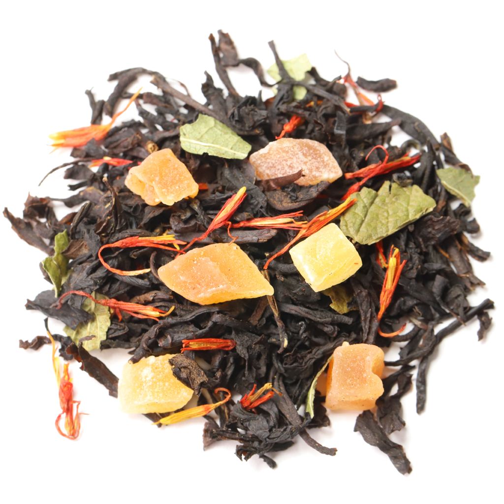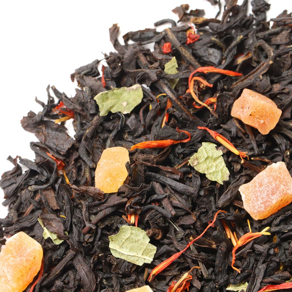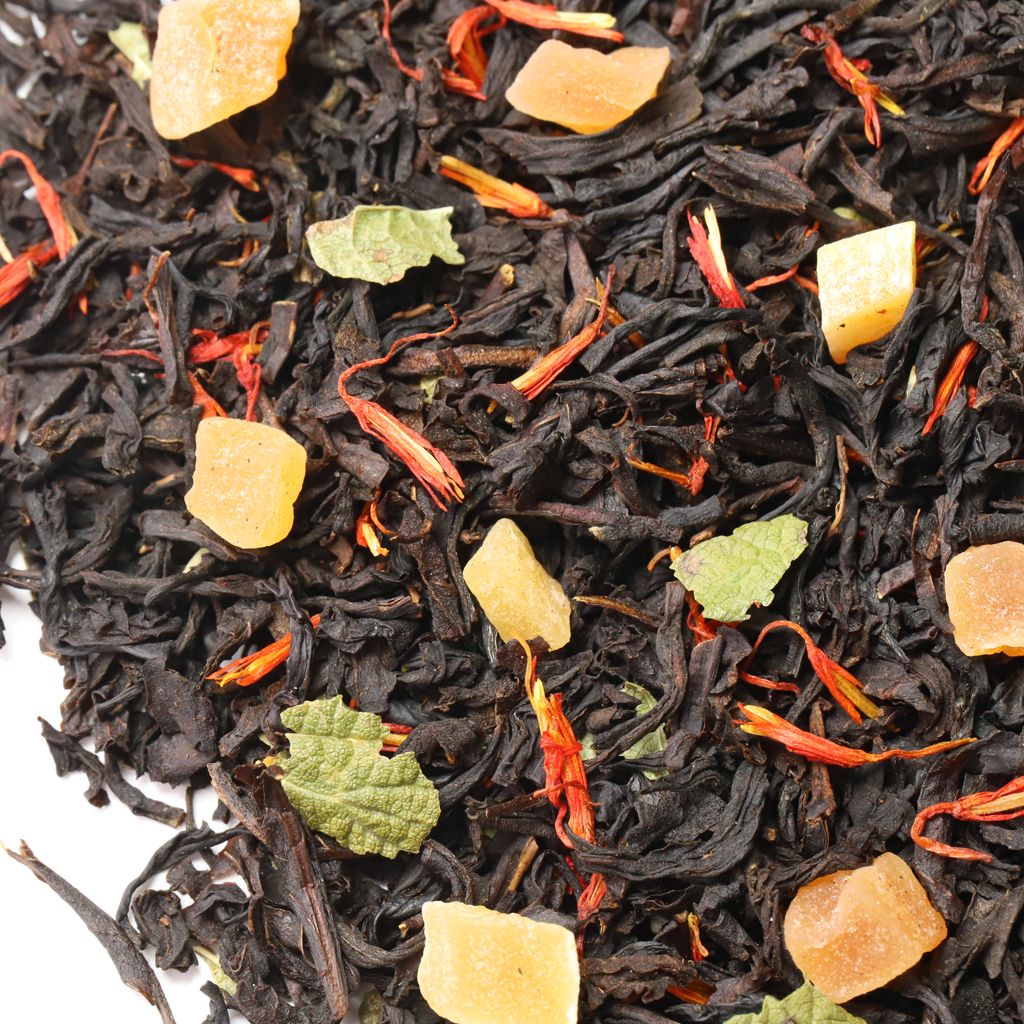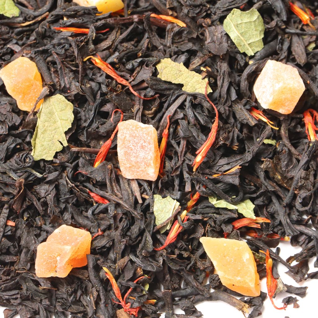 Смесь черных чаев, собранных на индийских плантациях, дополняется сладостью кусочков папайи (тропической дыни) и лепестками сафлора.