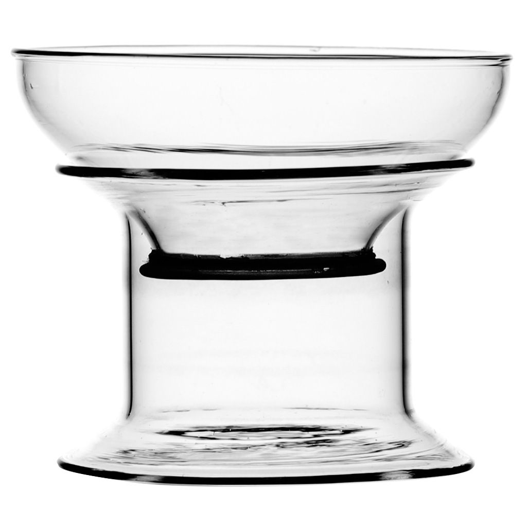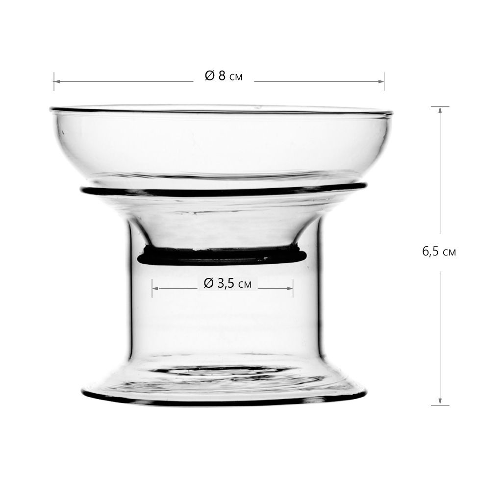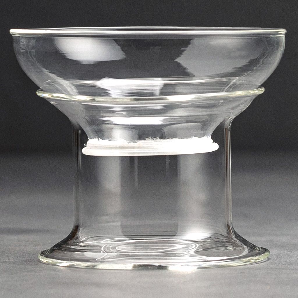 Чайное ситечко округлой конической формы, с подставкой в форме венчика на ножке, из стекла