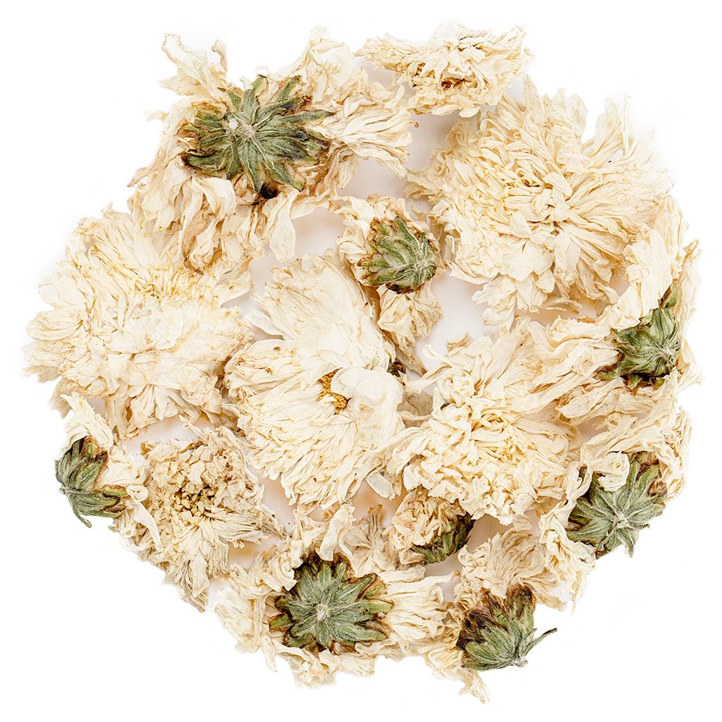 Цветочный чай из провинции Аньхой, район Хуаньшань (Жёлтые горы). Цзюй Хуа употребляют отдельно, но чаще добавляют засушенные цветы в готовый чай, и он приобретает аромат хризантемы, но сохраняет свой собственный вкус. Цзюй Хуа популярен как чай, сочетающий прелесть вкуса зелёного чая и аромат нежных цветов. Их тонкий, но сильный аромат прекрасно оттеняет, но не заглушает вкус чая. Особенно хорош Цзюй Хуа в жару, в сочетании с лёгким зелёным чаем, так как по мнению китайских врачей он усиливает охлаждающее действие чая. Цзюй Хуа убирает жар и сто болезней. Цвет настоя изумрудно-зелёный, аромат и вкус цветочные, сладковато-свежие, пряные. Цзюй Хуа заваривают и молоком, что благотворно влияет на желудок. Цзюй Хуа, как и все цветочные чаи, благотворно влияет на эмоциональное состояние человека, полезен для печени, крови, способствует выведению из организма токсинов, тем самым нормализуя физиологические процессы.