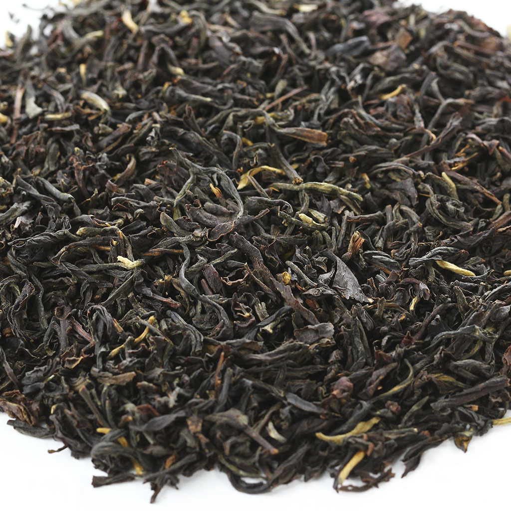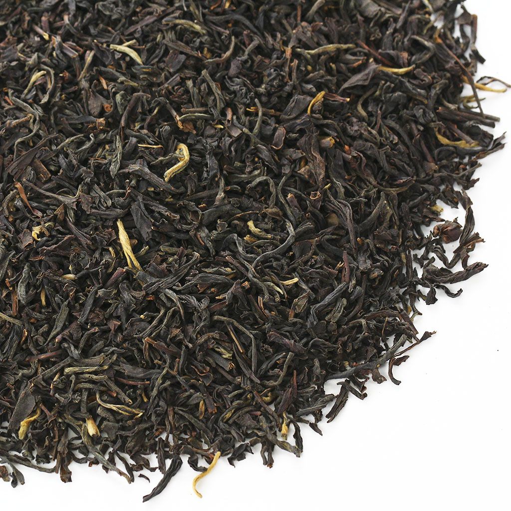 Россыпь представляет собой некрупные скрученные чаинки темного цвета с вкраплениями золотистых почек.