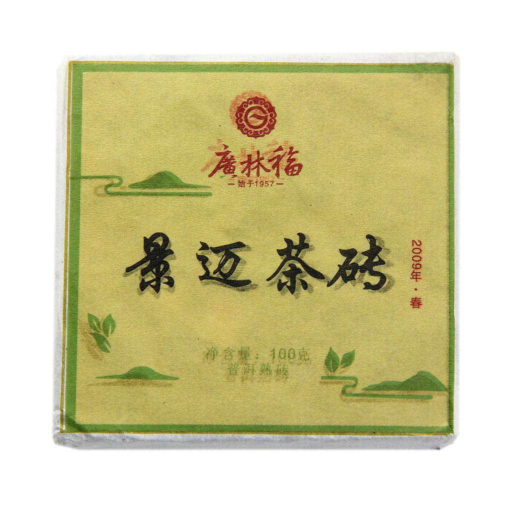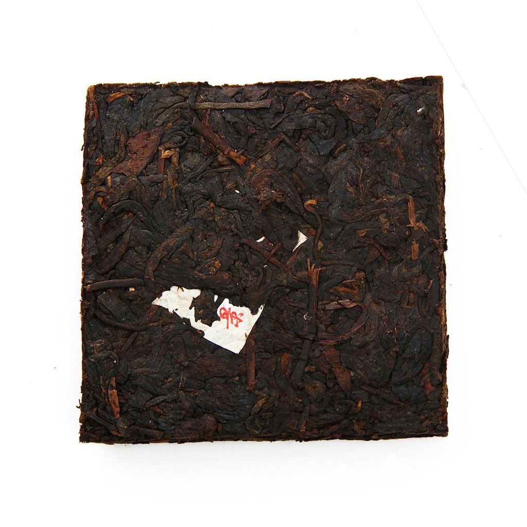 Крупный темный чайный лист, слегка скручен и плотно спрессован в небольшую квадратную плитку.