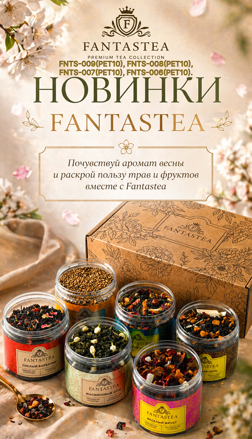 В ассортименте представлены чёрные, зелёные, травяные и фруктовые чаи с натуральной мятой. Купажи включают дополнительные ингредиенты: лимон, мелиссу, лаванду, жасмин, гибискус, ягоды и специи — в зависимости от назначения и вкусового профиля. Все смеси создаются на основе отборного сырья и проходят контроль качества, а мята сохраняет эфирные масла благодаря щадящей сушке.