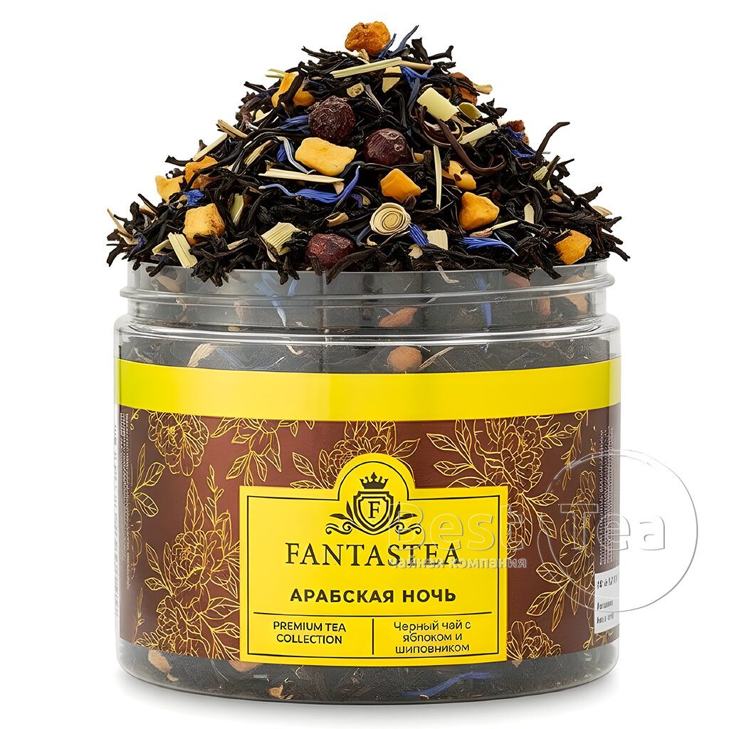 Состав: чай черный, кусочки яблок, плоды шиповника, измельченная лимонная трава, лепестки василька, аромат цветущего сада