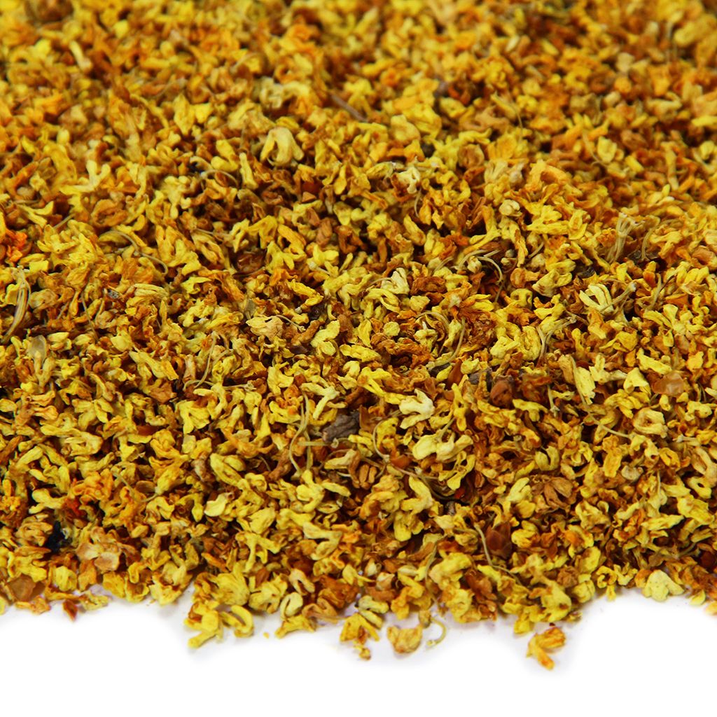 Название Османтус переводится с греческого, как ароматный цветок. Цветками Османтуса цветет дерево корицы. У Османтусов есть одна интересная особенность. Они пахнут спелыми персиками и абрикосами, хотя расцветают на коричном дереве. Запахом корицы привычным для нас обладает кора дерева. Цветы Осмарантуса чудеснейший натуральный ароматизатор. Ароматом их масел пропитывают чайные листья на последнем этапе переработки. Благодаря добавке Османтуса при употреблении чая Гуй Хуа ощущаются фруктовые нотки сладости и едва заметной горьковатости. Большим ценителям чая китайцам Гуй Хуа Османтус нравится не только своим ароматом, но и множеством целебных свойств. Он оказывает благотворное влияние на кровеносную систему, помогая очищать сосуды. С его помощью дети успешно справляются с дерматозом, возникающим при аллергии. Чай Гуй Хуа Османтус, способствуя выработки эндорфинов в организме человека, поднимает настроение.