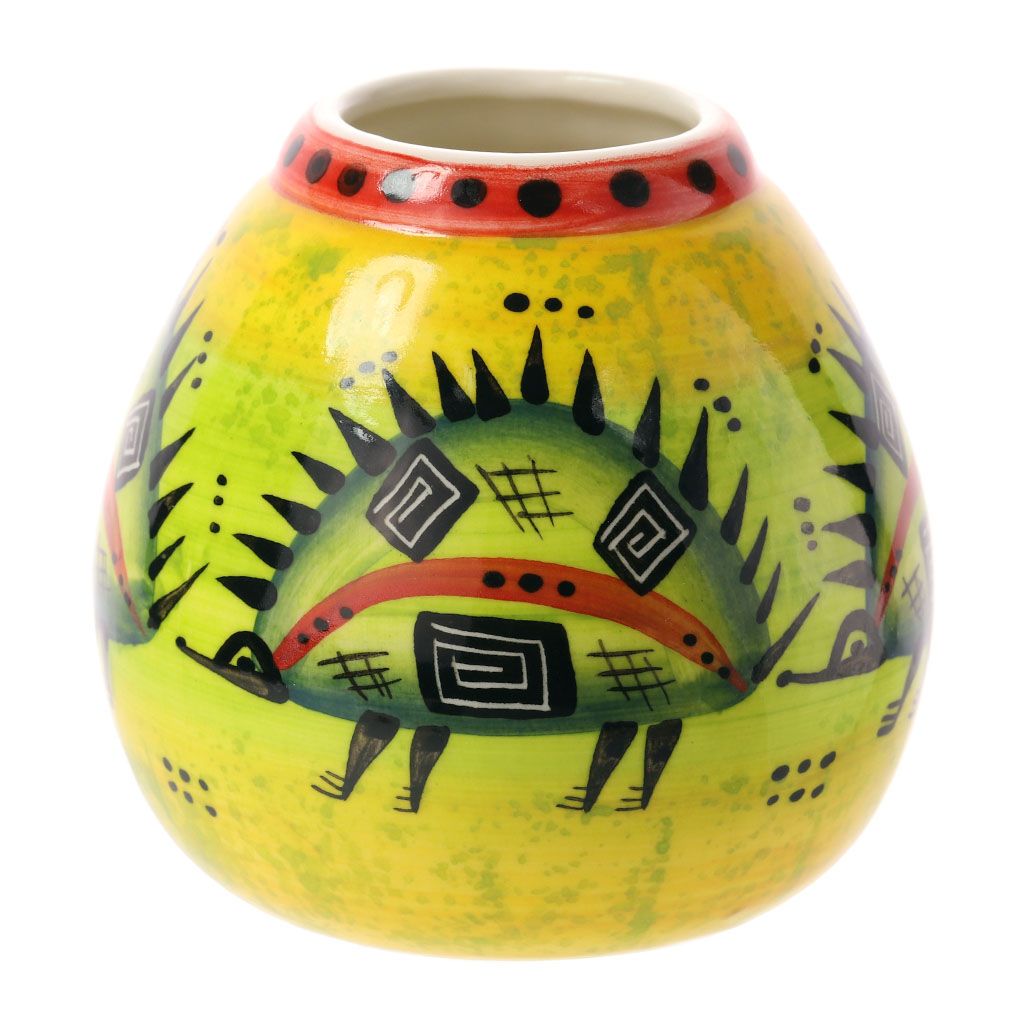 Калабас керамический, каплевидной формы, расписан стилизованными изображениями дикобразов