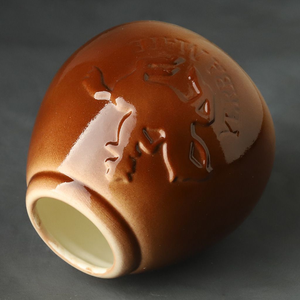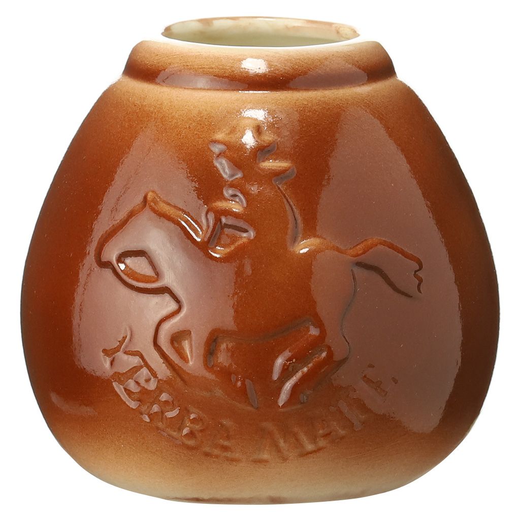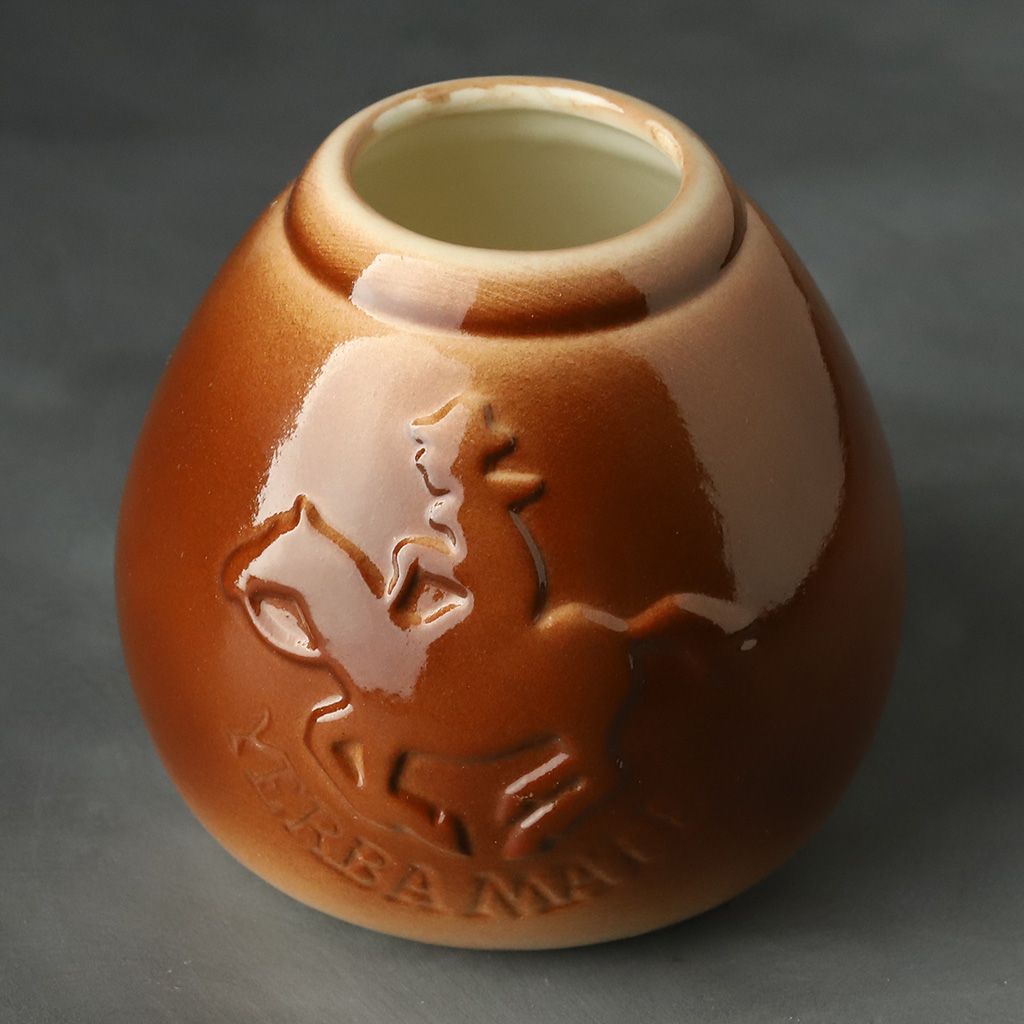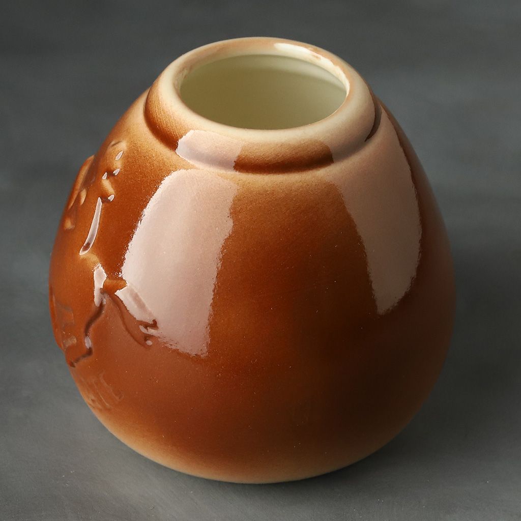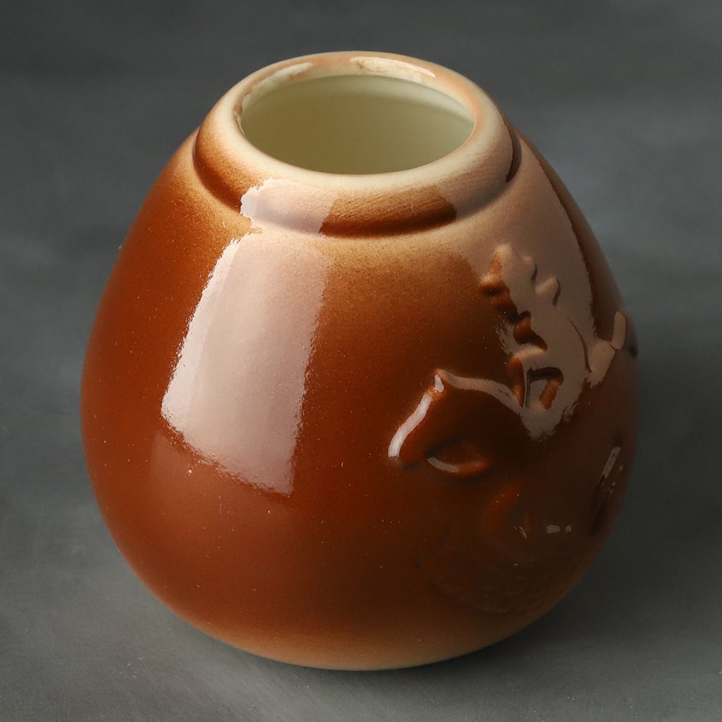 Калабас керамический каплевидной формы, красно-коричневый лаковый, с рельефным изображением всадника
