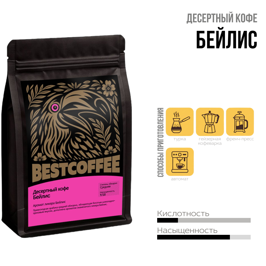Превосходная арабика средней обжарки, обладающая богатым шоколадно-ореховым вкусом, дополнена ароматом знаменитого ликера Бейлис.