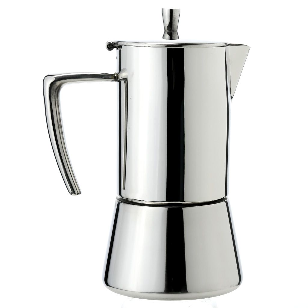Кофеварка гейзерная Elite №2, с верхней цилиндрической и нижней полуконической частью. Корпус и ручка из нержавеющей стали.