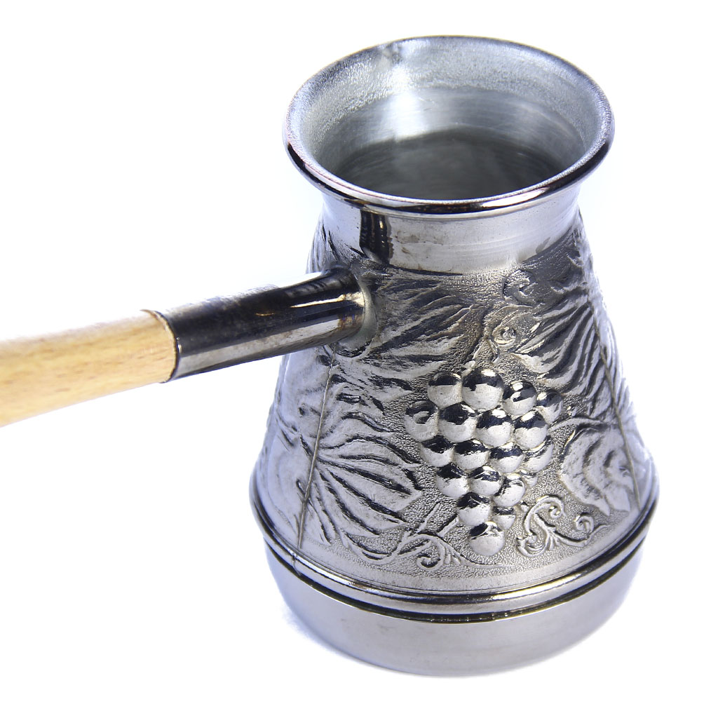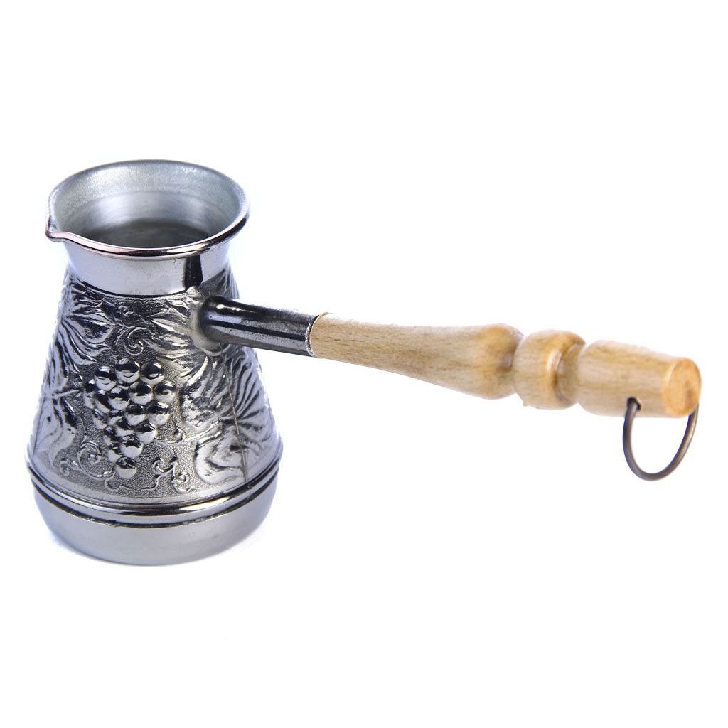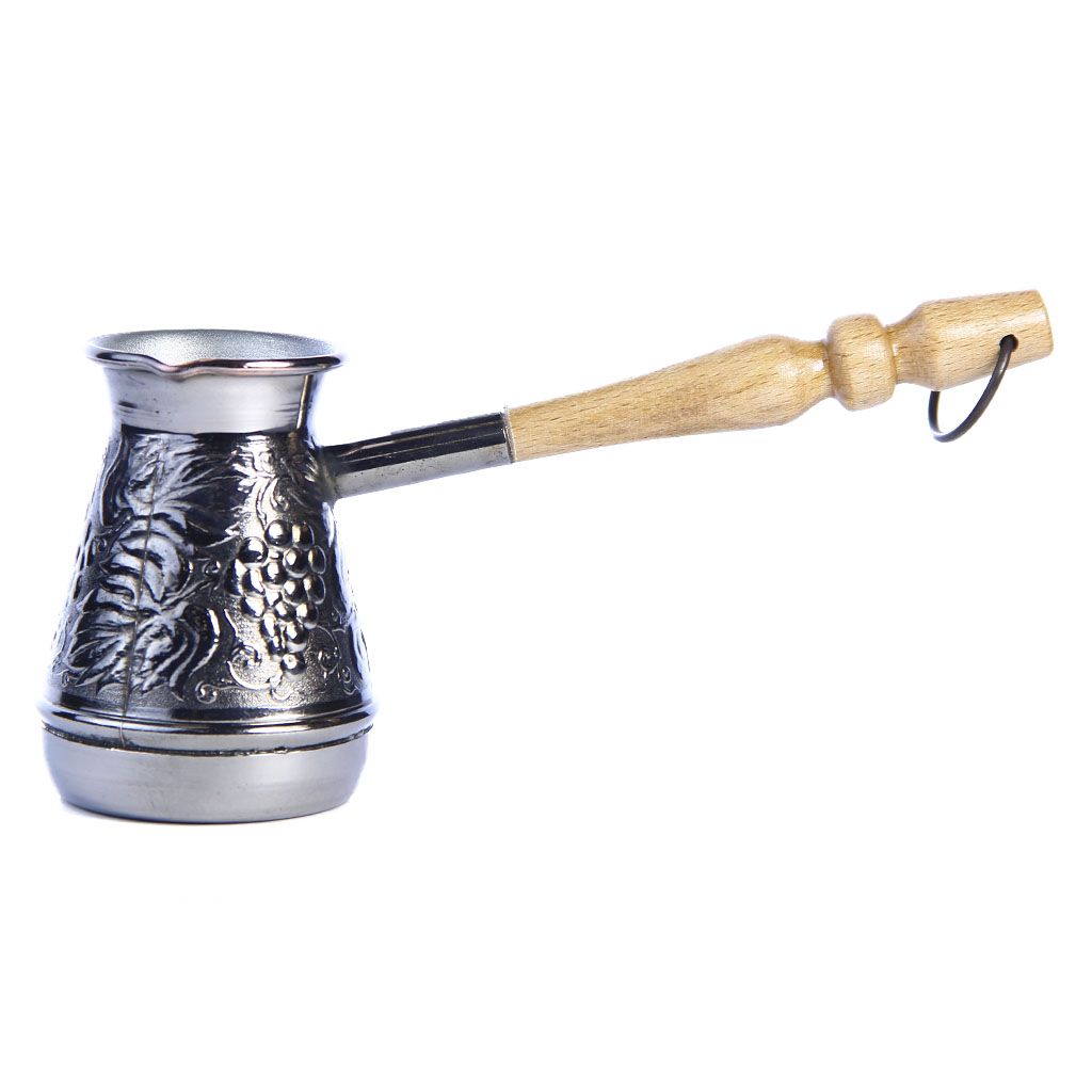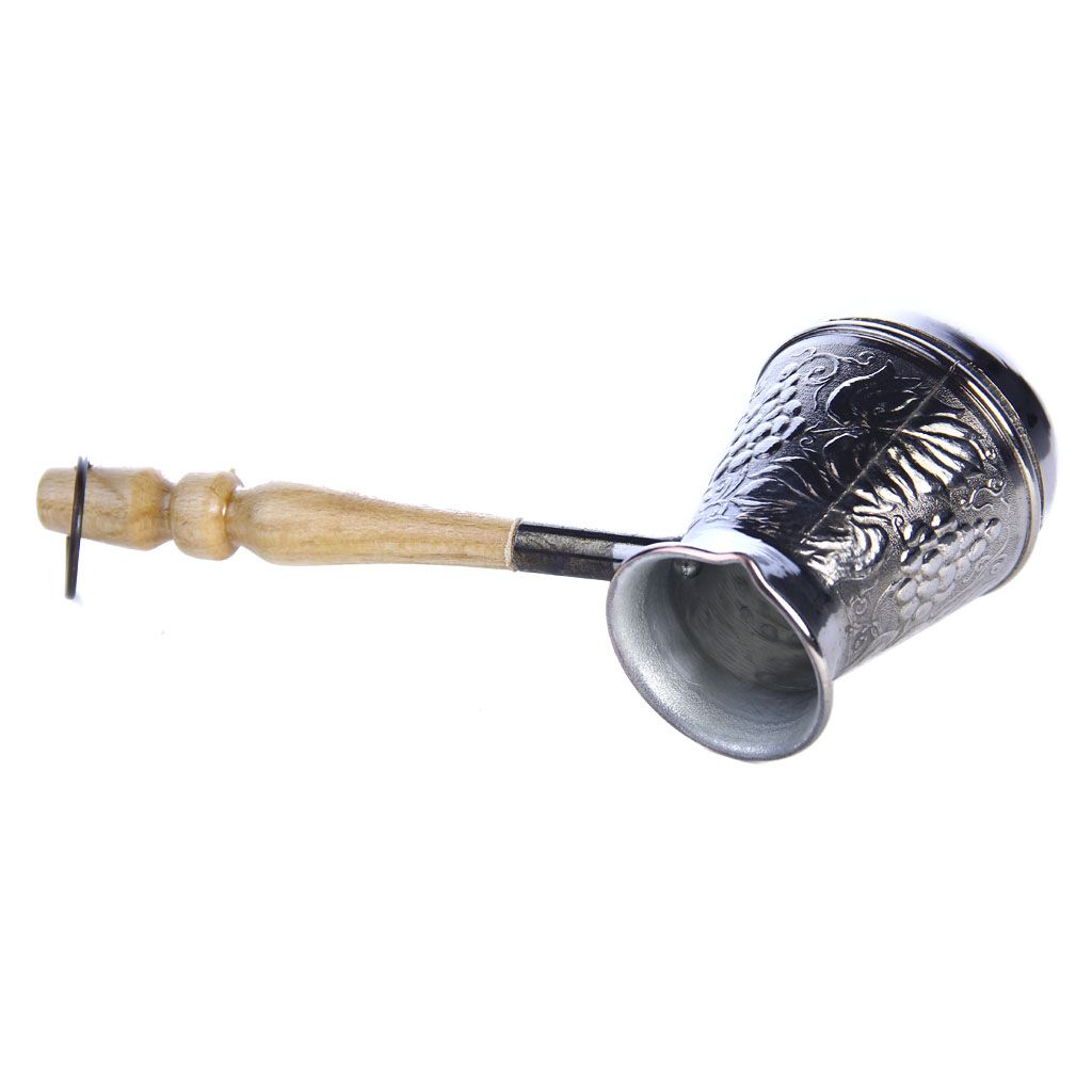 Медная турка классической формы, с длинной деревянной ручкой, объемом 120 мл.