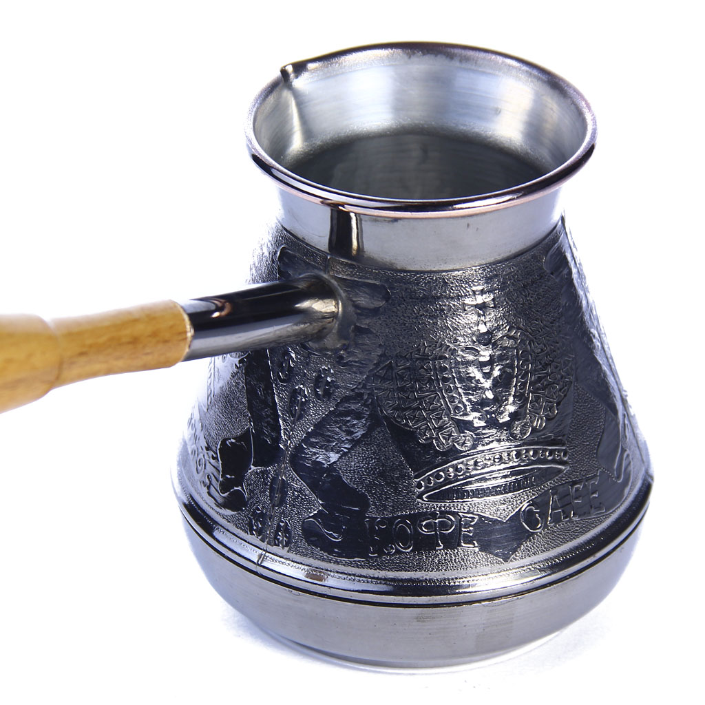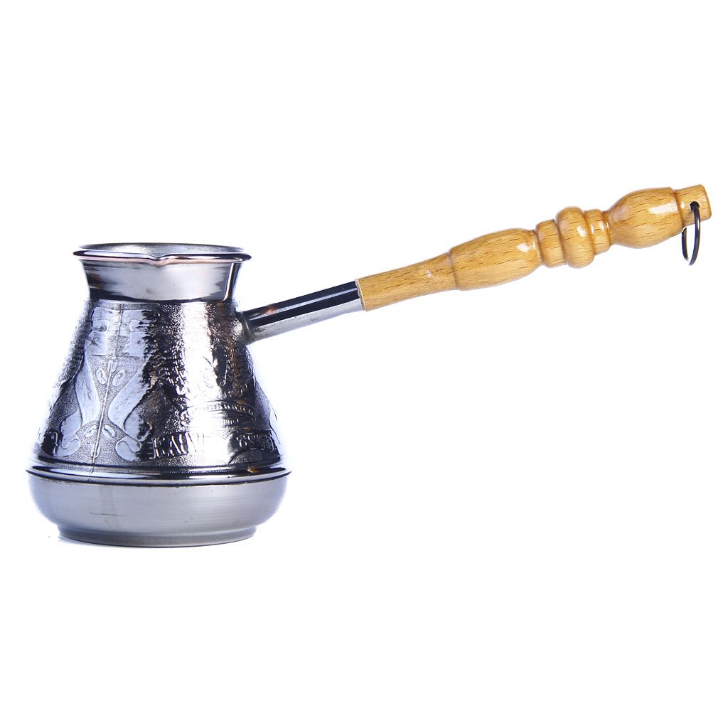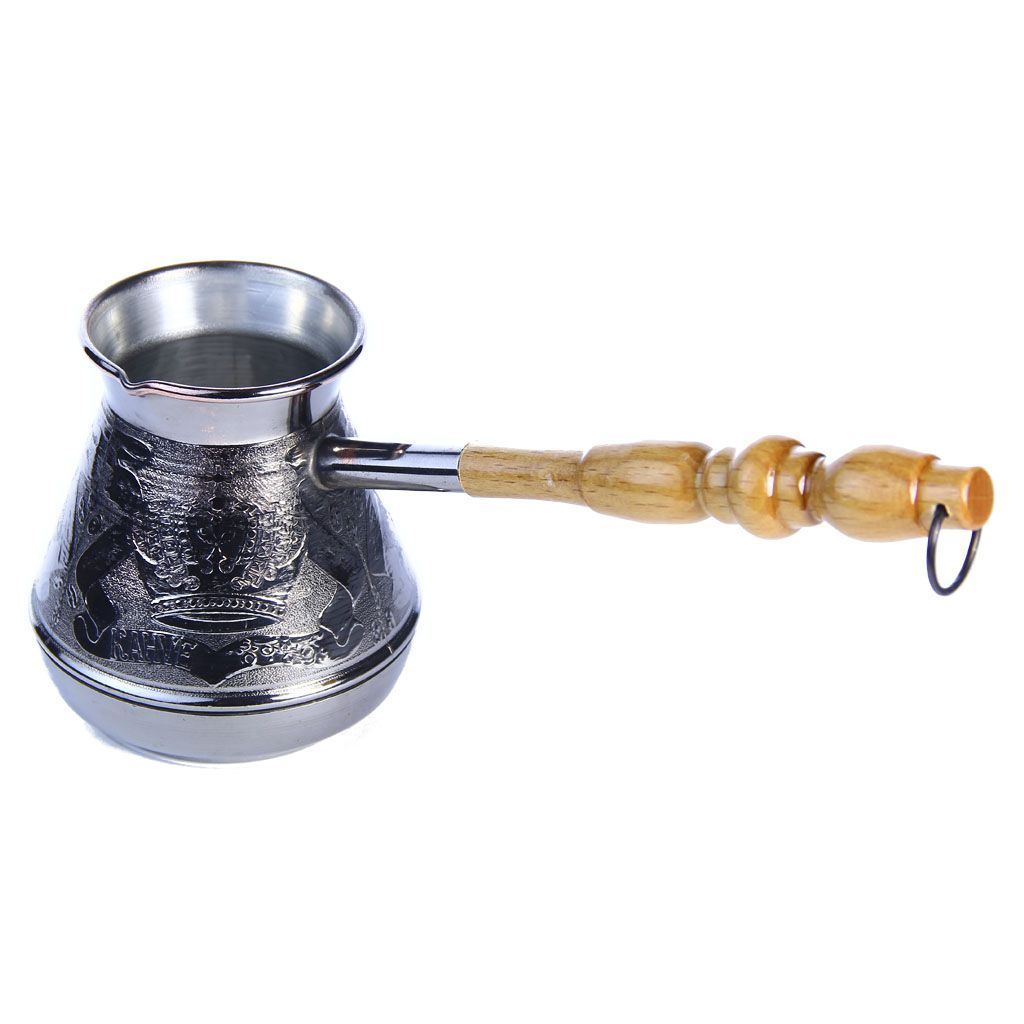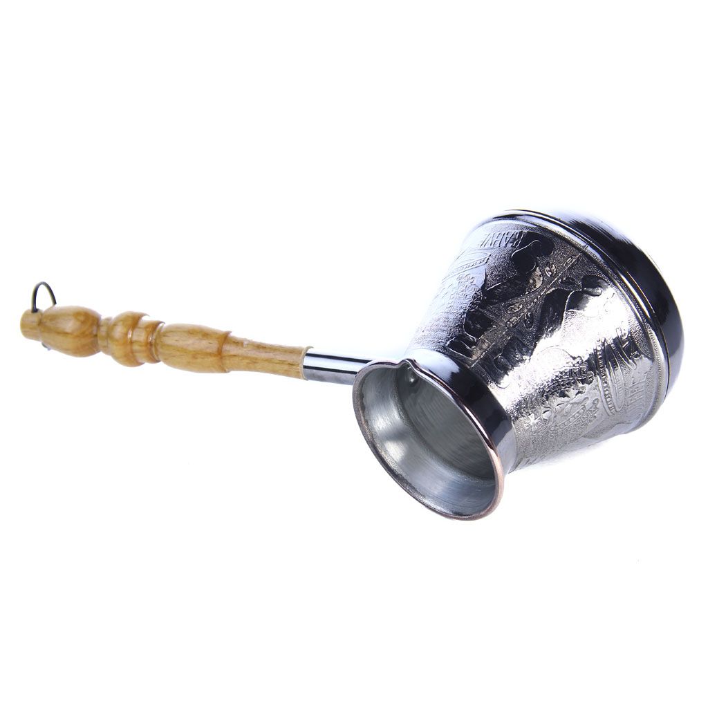 Медная турка конической формы, с длинной деревянной ручкой, объемом 400 мл.